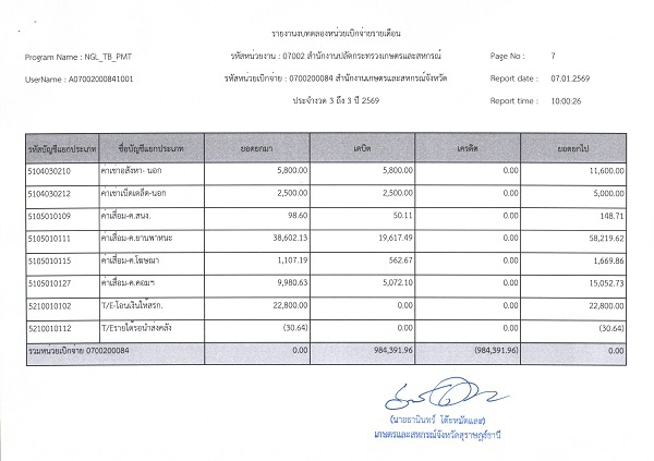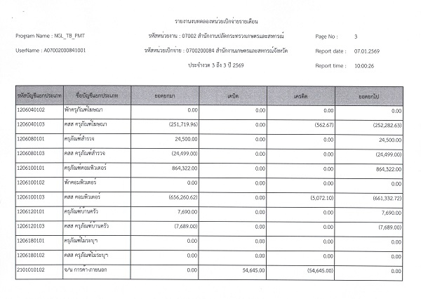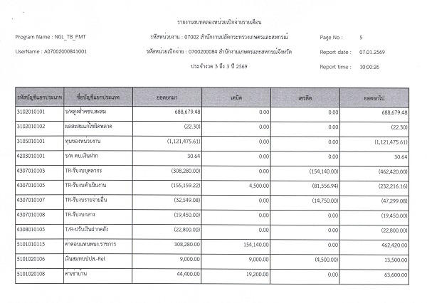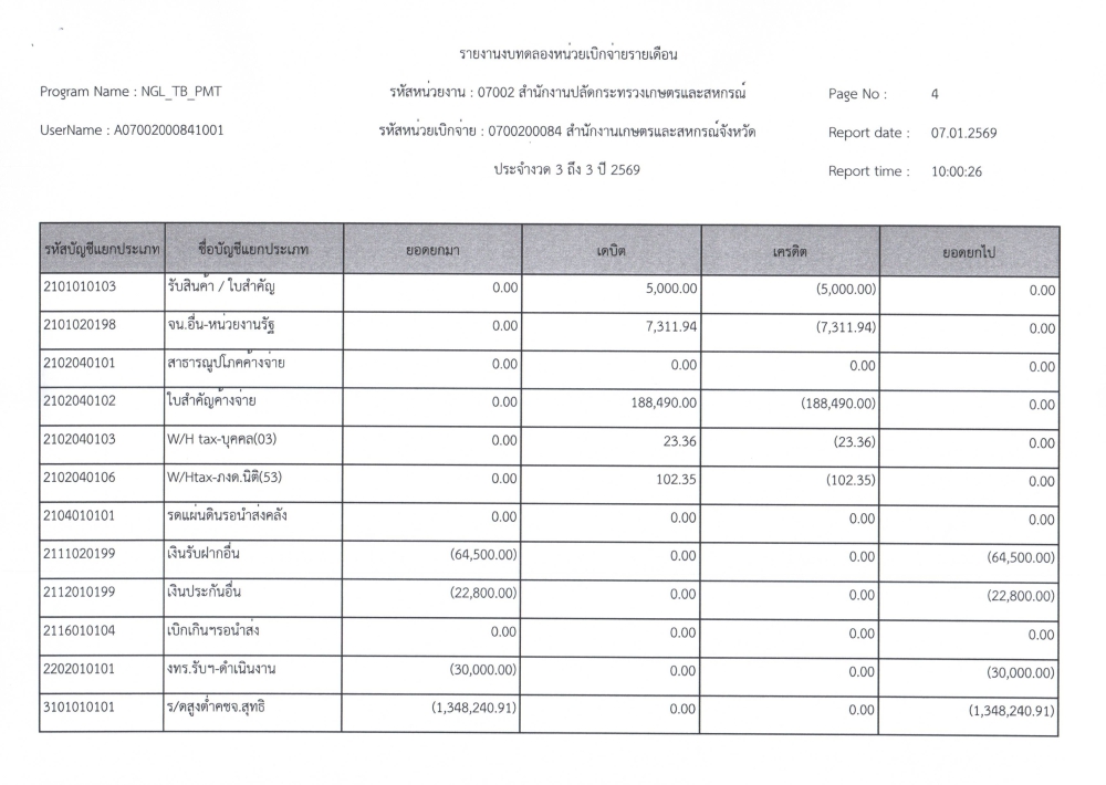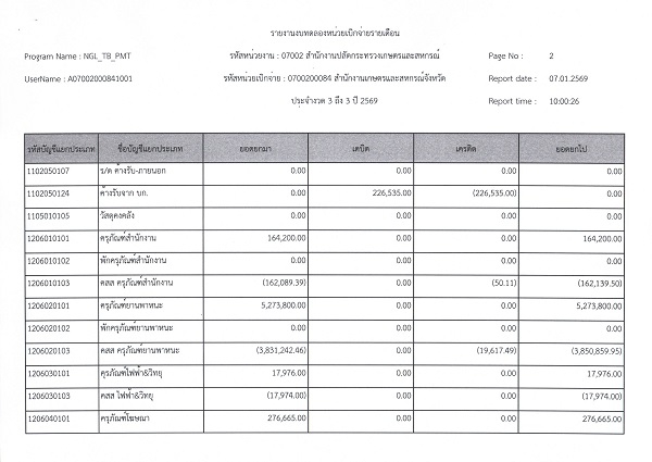 รายงานงบทดลอง สำนักงานเกษตรและสหกรณ์จังหวัดสุราษฎร์ธานี ประจำเดือนธันวาคม 2568 ประจำงวด 3 ประจำปีงบประมาณ พ.ศ. 2569