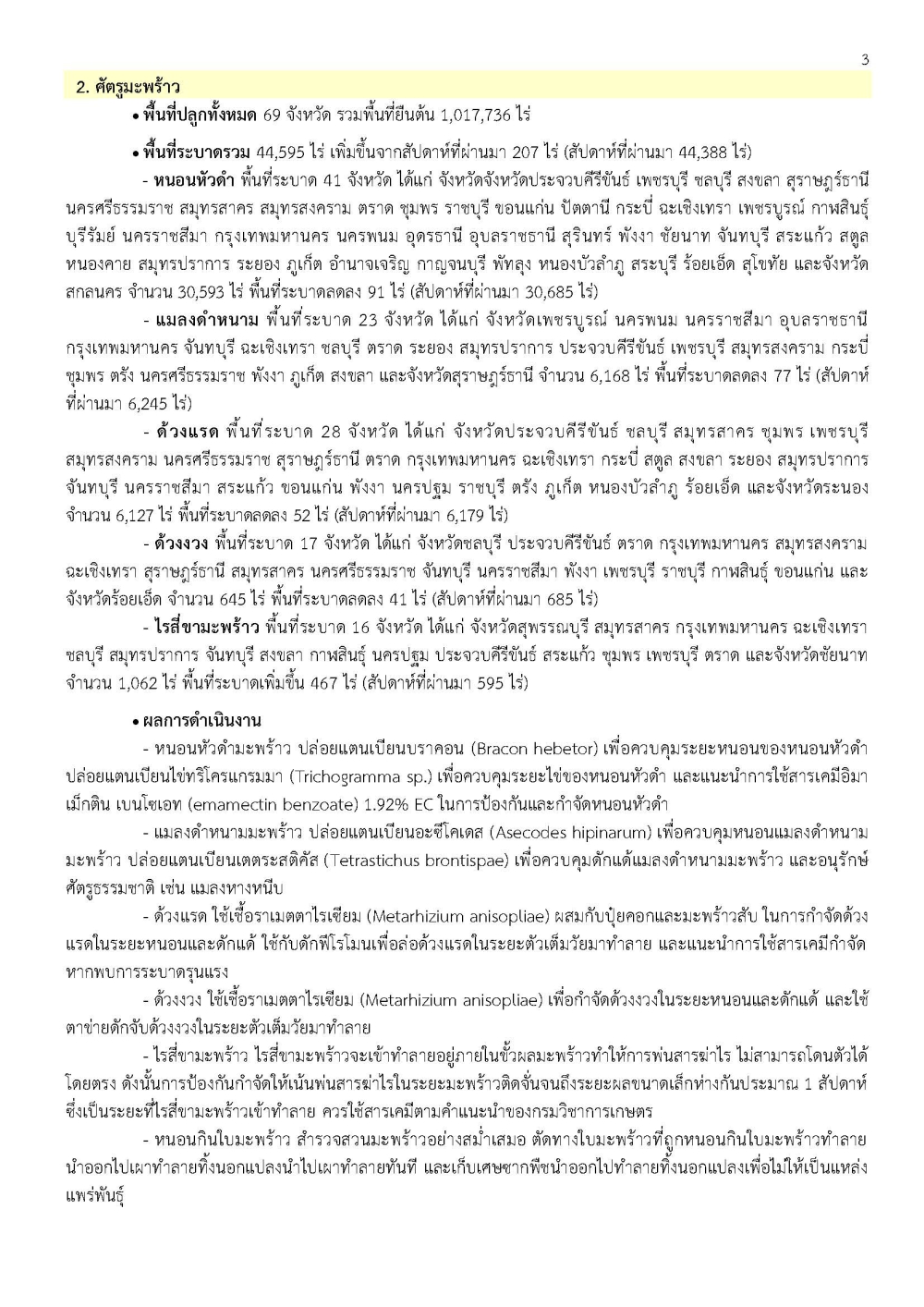 ข้อมูลพยากรณ์และเตือนการระบาดศัตรูพืช ณ วันที่ 10 ธันวาคม 2568