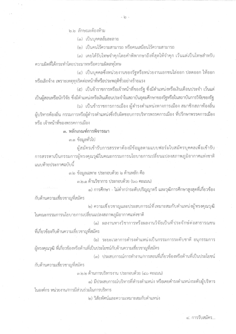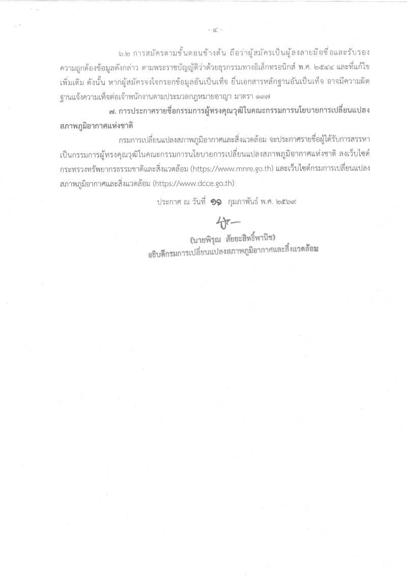 ประกาศฯ รับสมัครบุคคลเพื่อเข้ารับการสรรหาเป็นกรรมการผู้ทรงคุณวุฒิในคณะกรรมการนโยบายการเปลี่ยนแปลงสภาพภูมิอากาศแห่งชาติ