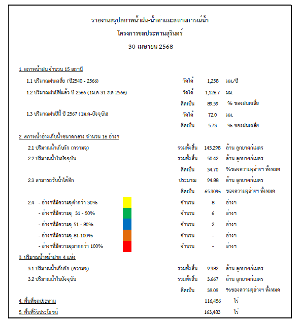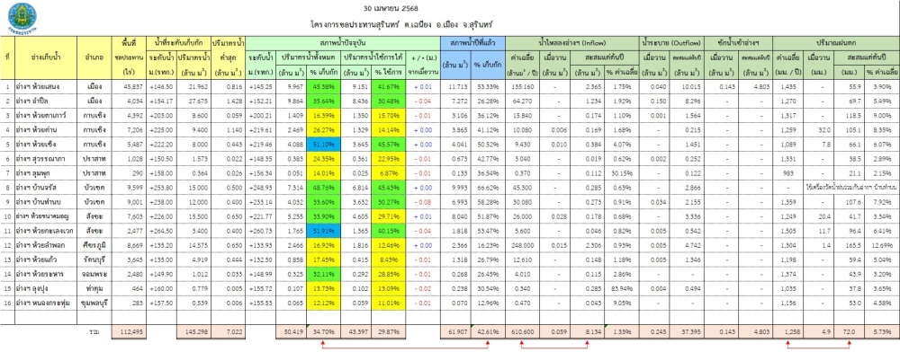สถานการณ์น้ำจังหวัดสุรินทร์ ประจำวันที่ 30 เมษายน 2568