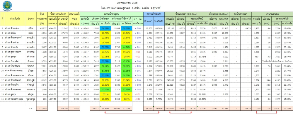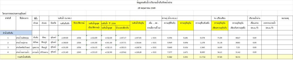 สถานการณ์น้ำจังหวัดสุรินทร์ ประจำวันที่ 28 พฤษภาคม 2568