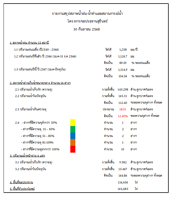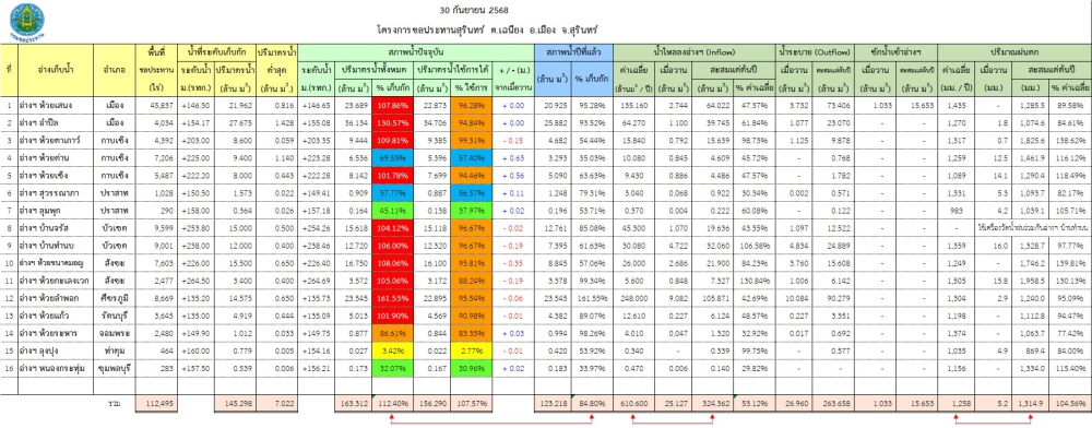 สถานการณ์น้ำจังหวัดสุรินทร์ ประจำวันที่ 30 กันยายน 2568