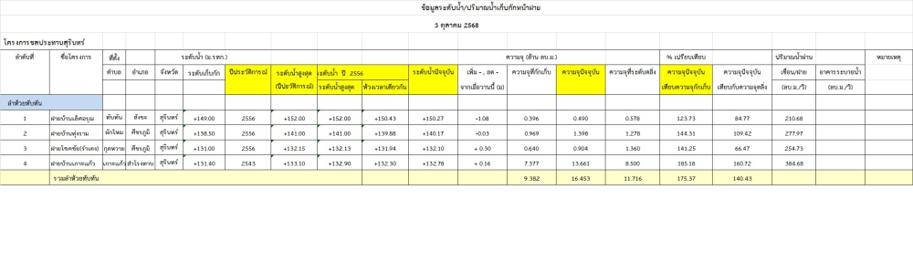 สถานการณ์น้ำจังหวัดสุรินทร์ ประจำวันที่ 3 ตุลาคม 2568