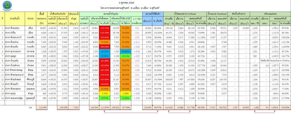 สถานการณ์น้ำจังหวัดสุรินทร์ ประจำวันที่ 5 ตุลาคม 2568