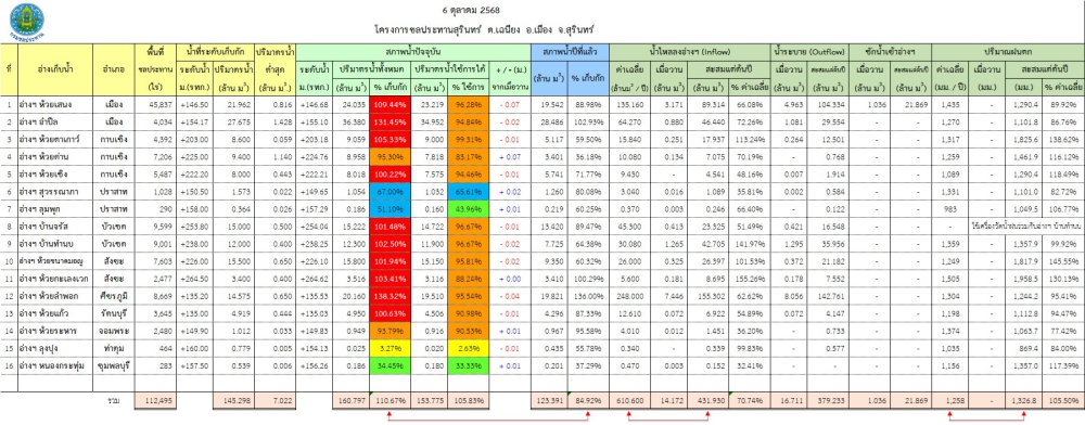 สถานการณ์น้ำจังหวัดสุรินทร์ ประจำวันที่ 6 ตุลาคม 2568