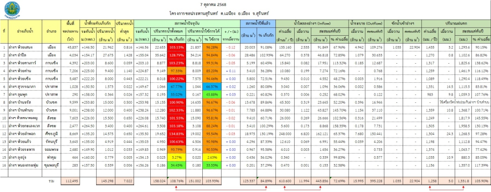 สถานการณ์น้ำจังหวัดสุรินทร์ ประจำวันที่ 7 ตุลาคม 2568