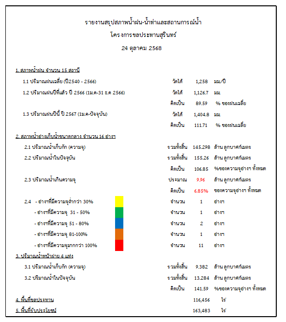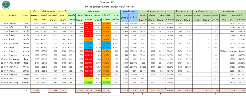 สถานการณ์น้ำจังหวัดสุรินทร์ ประจำวันที่ 24 ตุลาคม 2568
