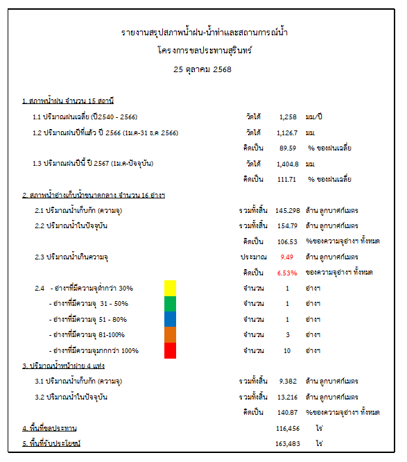 สถานการณ์น้ำจังหวัดสุรินทร์ ประจำวันที่ 25 ตุลาคม 2568