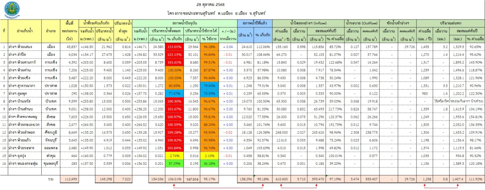 สถานการณ์น้ำจังหวัดสุรินทร์ ประจำวันที่ 28 ตุลาคม 2568