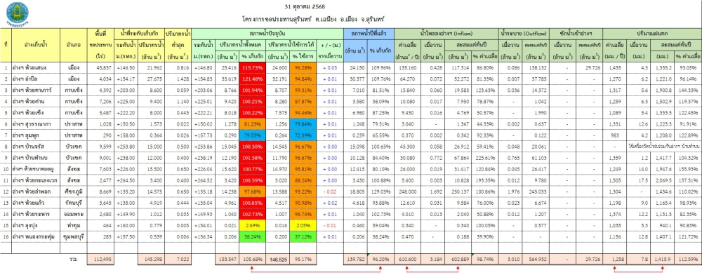 สถานการณ์น้ำจังหวัดสุรินทร์ ประจำวันที่ 31 ตุลาคม 2568