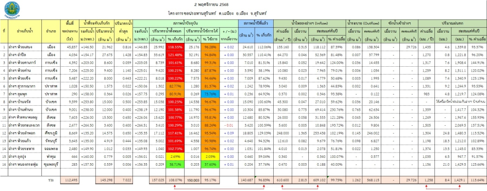 สถานการณ์น้ำจังหวัดสุรินทร์ ประจำวันที่ 2 พฤศจิกายน 2568