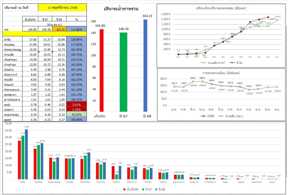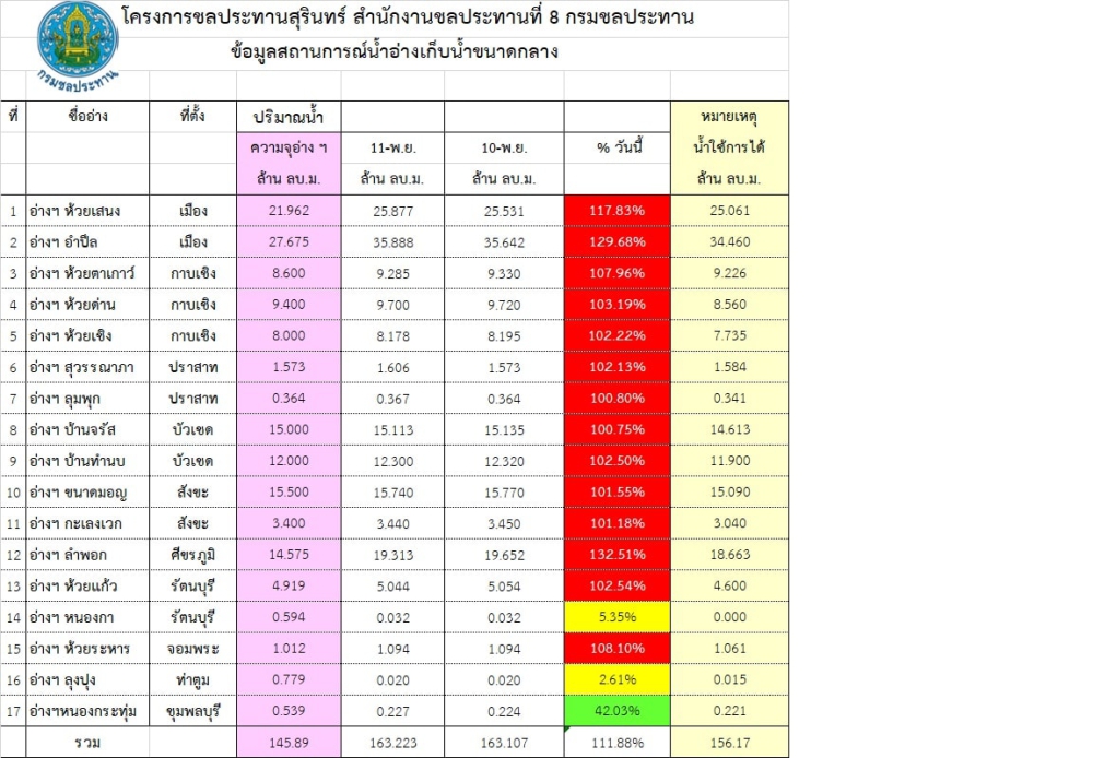 สถานการณ์น้ำจังหวัดสุรินทร์ ประจำวันที่ 11 พฤศจิกายน 2568