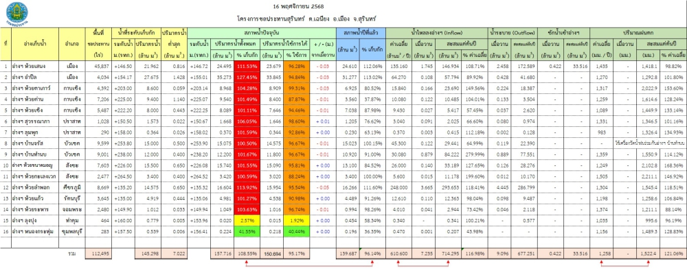 สถานการณ์น้ำจังหวัดสุรินทร์ ประจำวันที่ 16 พฤศจิกายน 2568