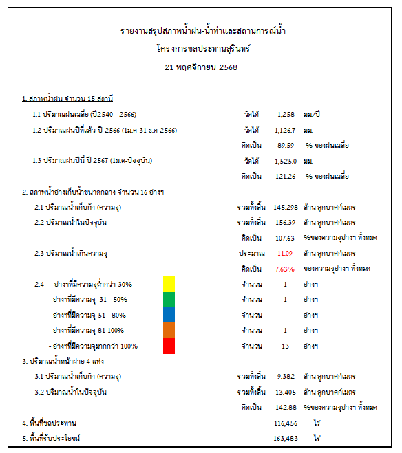 สถานการณ์น้ำจังหวัดสุรินทร์ ประจำวันที่ 21 พฤศจิกายน 2568