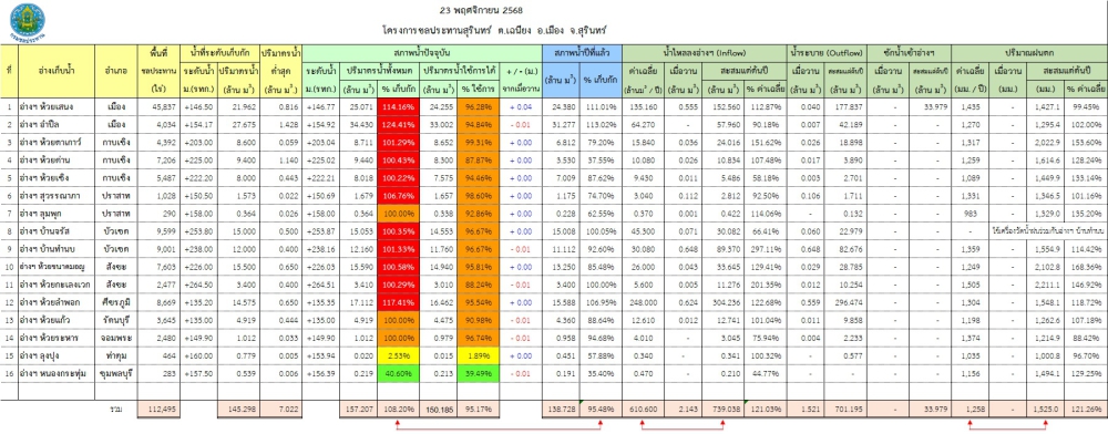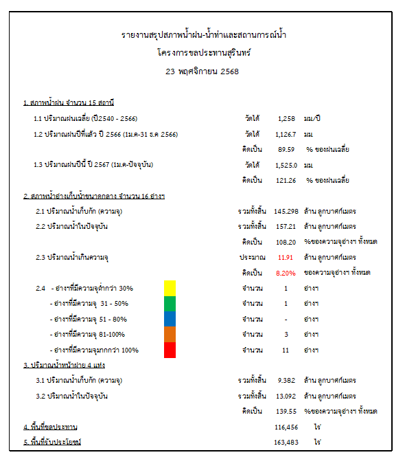 สถานการณ์น้ำจังหวัดสุรินทร์ ประจำวันที่ 23 พฤศจิกายน 2568