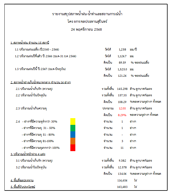 สถานการณ์น้ำจังหวัดสุรินทร์ ประจำวันที่ 24 พฤศจิกายน 2568