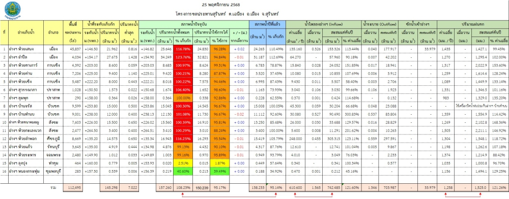 สถานการณ์น้ำจังหวัดสุรินทร์ ประจำวันที่ 25 พฤศจิกายน 2568