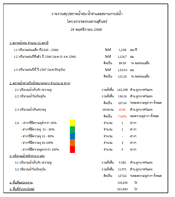 สถานการณ์น้ำจังหวัดสุรินทร์ ประจำวันที่ 29 พฤศจิกายน 2568