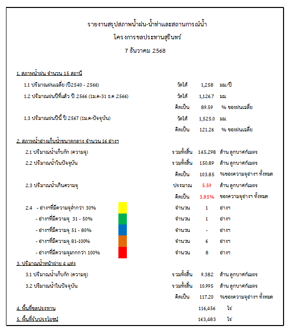 สถานการณ์น้ำจังหวัดสุรินทร์ ประจำวันที่ 7 ธันวาคม 2568