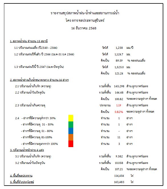 สถานการณ์น้ำจังหวัดสุรินทร์ ประจำวันที่ 16 ธันวาคม 2568