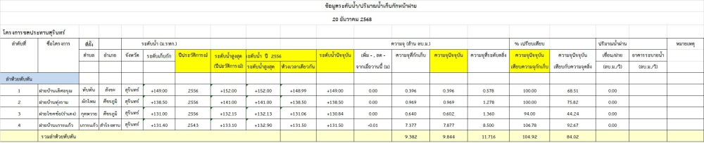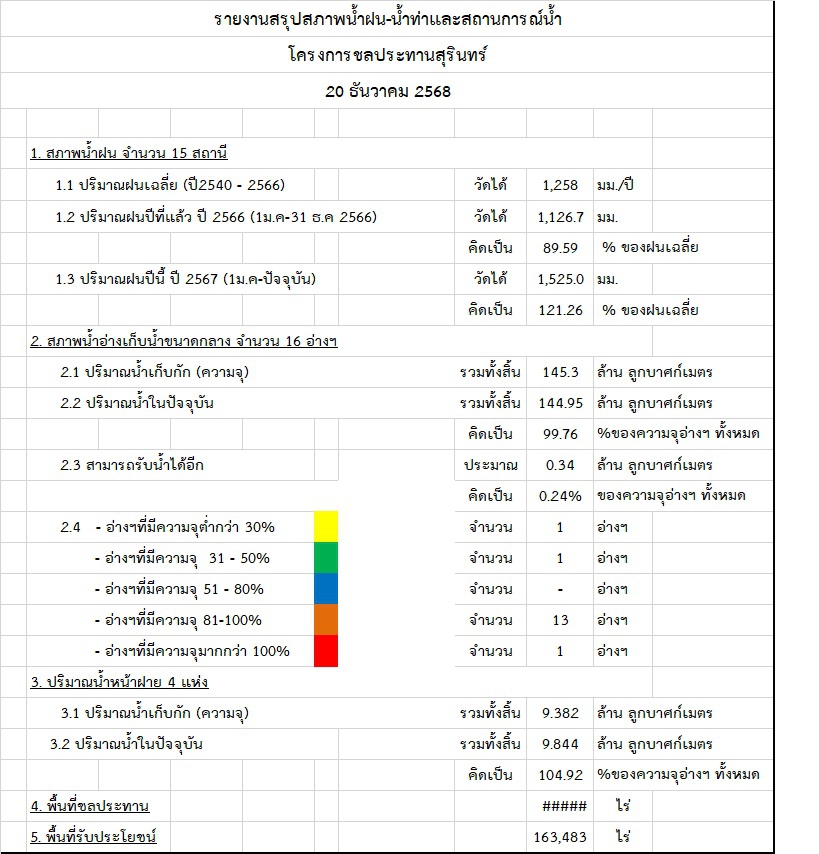 สถานการณ์น้ำจังหวัดสุรินทร์ ประจำวันที่ 20 ธันวาคม 2568