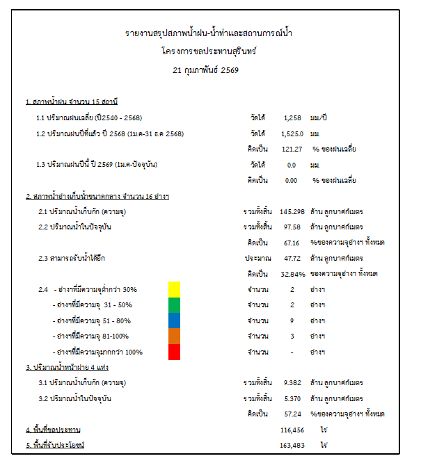 สถานการณ์น้ำจังหวัดสุรินทร์ ประจำวันที่ 21 กุมภาพันธ์ 2569