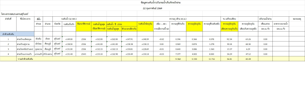 สถานการณ์น้ำจังหวัดสุรินทร์ ประจำวันที่ 22 กุมภาพันธ์ 2569