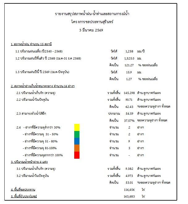 สถานการณ์น้ำจังหวัดสุรินทร์ ประจำวันที่ 3 มีนาคม 2569