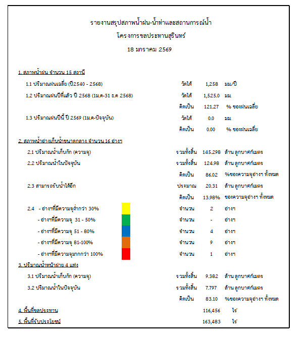 สถานการณ์น้ำจังหวัดสุรินทร์ ประจำวันที่ 18 มกราคม 2569