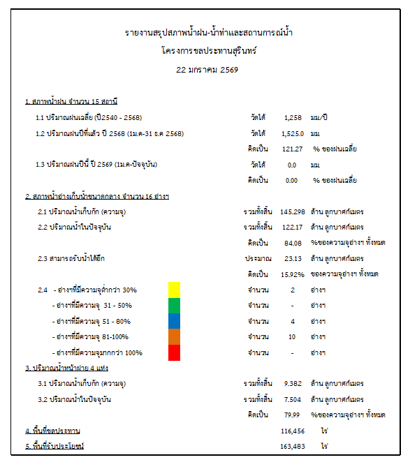 สถานการณ์น้ำจังหวัดสุรินทร์ ประจำวันที่ 22 มกราคม 2569