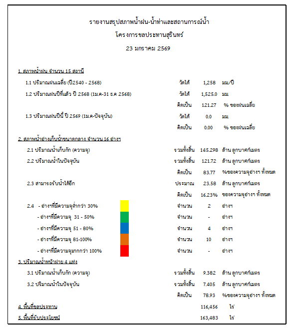 สถานการณ์น้ำจังหวัดสุรินทร์ ประจำวันที่ 23 มกราคม 2569