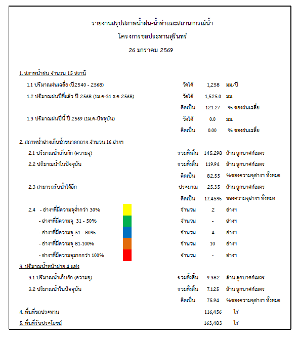 สถานการณ์น้ำจังหวัดสุรินทร์ ประจำวันที่ 26 มกราคม 2569