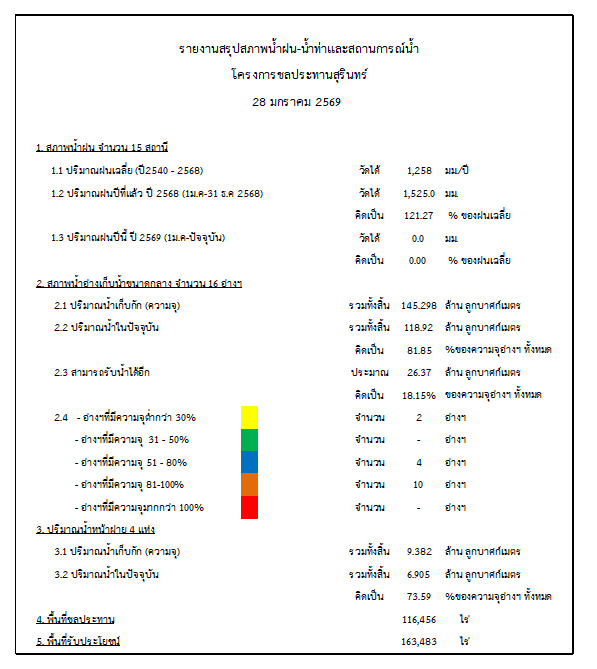 สถานการณ์น้ำจังหวัดสุรินทร์ ประจำวันที่ 28 มกราคม 2569