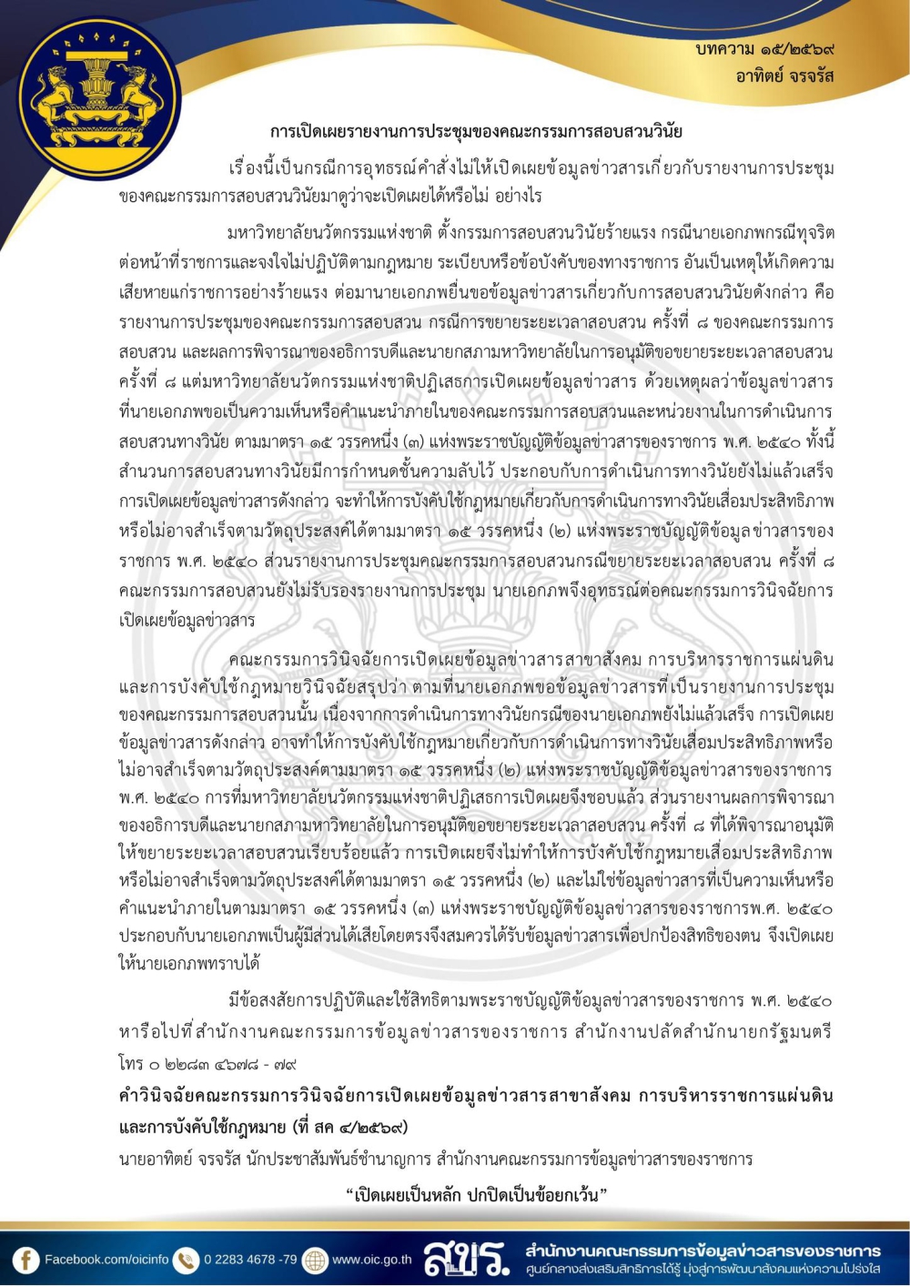บทความจากคำวินิจฉัย ประจำเดือน มีนาคม 2569