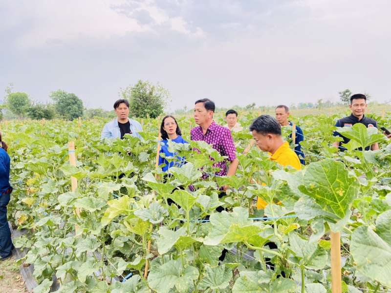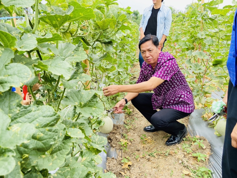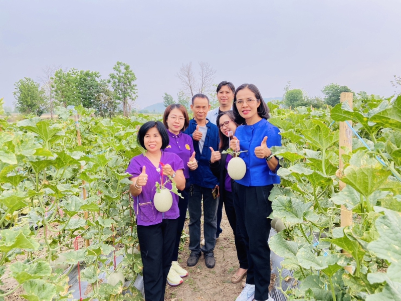 นายจิรัฐถิติกาล โพธิผล เกษตรและสหกรณ์จังหวัดตาก มอบหมายให้ นางสาวณิชาภา วงษ์สมบูรณ์ หัวหน้ากลุ่มยุทธศาสตร์พัฒนาการเกษตร พร้อมด้วยเจ้าหน้าที่กลุ่มยุทธศาสตร์พัฒนาการเกษตร เข้าร่วมเก็บเกี่ยวผลผลิตเมล่อน ในกิจกรรม “ตลาดนำ นวัตกรรมเสริม เพิ่มรายได้ เมล่อนนอกโรงเรือน จังหวัดตาก” ซึ่งจัดกิจกรรมโดยสำนักงานพาณิชย์จังหวัดตาก ณ แปลงปลูกเมล่อนของสมาชิกวิสาหกิจชุมชนกลุ่มมิกกี้ฟาร์ม บ้านเพชรชมภู ตำบลนาโบสถ์ อำเภอวังเจ้า จังหวัดตาก โดยมี นายศักดิ์ดา สำเภาเงิน นายอำเภอวังเจ้า เป็นประธานการจัดกิจกรรม