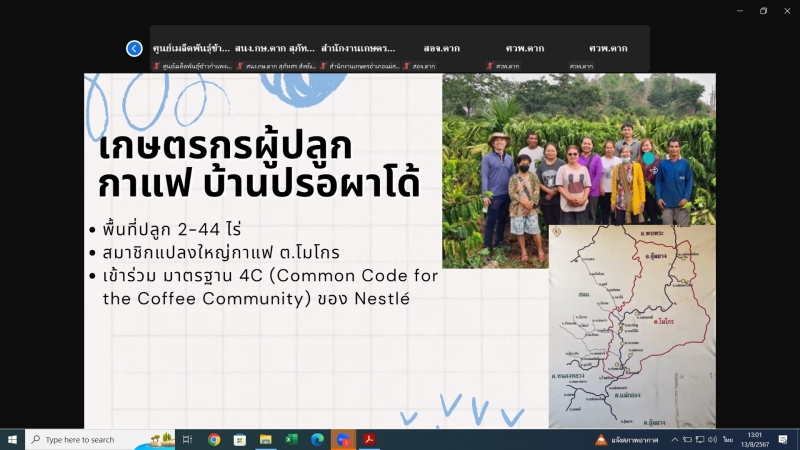 นายจิรัฐถิติกาล โพธิผล เกษตรและสหกรณ์จังหวัดตาก เป็นประธานการประชุมคณะทำงานตรวจประเมินแหล่งผลิตสินค้าเกษตร และคณะทำงานตรวจประเมินสินค้าเกษตรแปรรูปภายใต้แบรนด์ “ตากการันตี” ครั้งที่ 3/2567 ผ่านระบบ Zoom Meeting ณ ห้องประชุมสำนักงานเกษตรและสหกรณ์จังหวัดตาก ศาลากลางจังหวัดตาก อำเภอเมืองตาก จังหวัดตาก เพื่อพิจารณาข้อมูลของเกษตรกร/กลุ่มเกษตรกรในการพิจารณาขอเข้ารับการรับรองแหล่งผลิตสินค้าเกษตร ภายใต้แบรนด์ “ตากการันตี” ในการต่ออายุ จำนวน 12 ราย และรายใหม่ จำนวน 1 ราย และพิจารณาข้อมูลของเกษตรกร/กลุ่มเกษตรกรในการพิจารณาขอเข้ารับการรับรองคุณภาพสินค้าเกษตรแปรรูป ภายใต้แบรนด์ “ตากการันตี” ในการต่ออายุ จำนวน 1 ราย และรายใหม่ จำนวน 2 ราย ทั้งนี้ ได้มอบหมายให้กลุ่มสารสนเทศการเกษตรเป็นผู้จัดการประชุมดังกล่าว