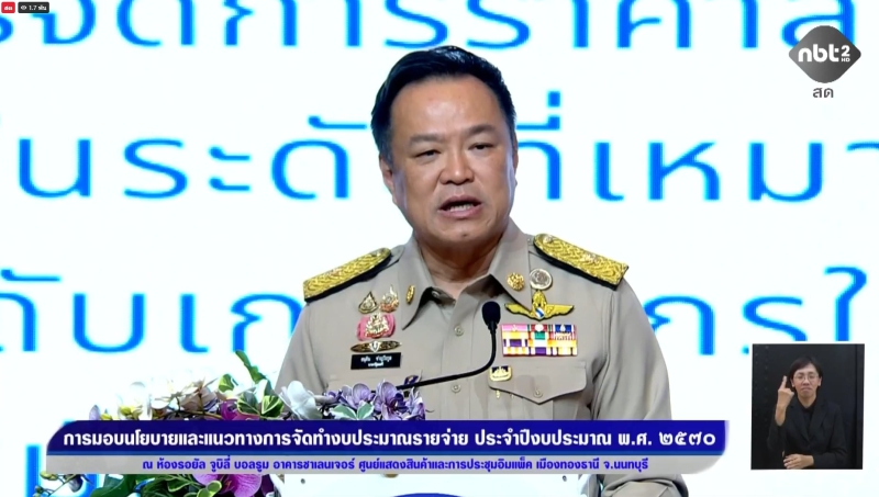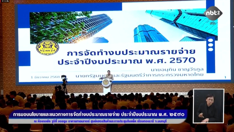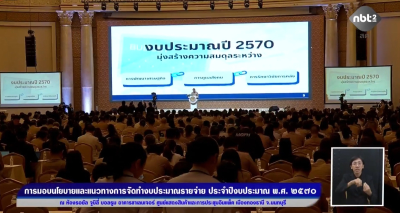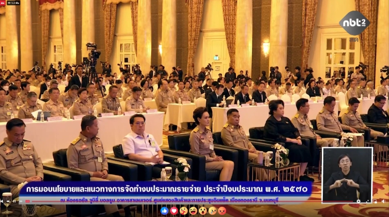 นางประเทือง มหาพิรุณ เกษตรและสหกรณ์จังหวัดตาก พร้อมด้วย เจ้าหน้าที่สำนักงานเกษตรและสหกรณ์ตาก เข้าร่วมรับฟังการประชุมสัมมนาการมอบนโยบายและแนวทางการจัดทำงบประมาณรายจ่ายประจำปีงบประมาณ พ.ศ. 2570 ณ ห้องประชุมสำนักงานเกษตรและสหกรณ์จังหวัดตาก ชั้น 2 ศาลากลางจังหวัดตาก อำเภอเมืองตาก จังหวัดตาก ถ่ายทอดสดผ่านทาง Facebook เพจ : NBT-เอ็นบีที โดยมี นายอนุทิน ชาญวีรกุล นายกรัฐมนตรี เป็นประธานในการมอบนโยบาย ทั้งนี้ได้มอบนโยบาย 5 ด้าน ได้แก่ 1) ด้านเศรษฐกิจ 2) ด้านความมั่นคง 3) ด้านสังคม 4) ด้านภัยธรรมชาติ และสิ่งแวดล้อม 5) ด้านการบริหารภาครัฐ และปฏิรูปกฎหมาย งบประมาณรายจ่ายประจำปี พ.ศ. 2570 ในวงเงิน 3,788,000 ล้านบาท เพื่อการขับเคลื่อนการดำเนินงานของรัฐบาล และส่วนราชการต่างๆ อย่างมีประสิทธิภาพ