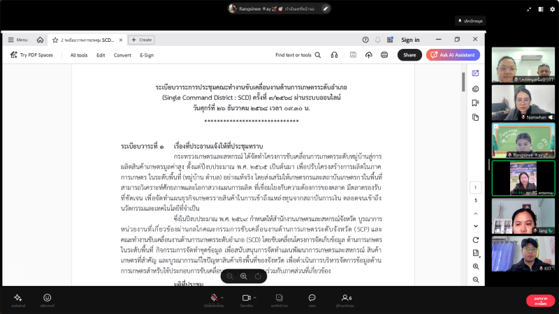นางประเทือง มหาพิรุณ เกษตรและสหกรณ์จังหวัดตาก มอบหมายให้ นางสาวกรรณิกานต์ ทิใหม่ธง นักวิเคราะห์นโยบายและแผนชำนาญการ กลุ่มยุทธศาสตร์พัฒนาการเกษตร พร้อมด้วย นายเสริมศักดิ์ ขันแก้ว นักวิเคราะห์นโยบายและแผนชำนาญการ กลุ่มช่วยเหลือเกษตรกรและโครงการพิเศษ เข้าร่วมประชุมคณะทำงานขับเคลื่อนงานด้านการเกษตรระดับอำเภอ (SCD) อำเภอท่าสองยาง ผ่านสื่ออิเล็กทรอนิกส์ ณ ห้องปฏิบัติงานกลุ่มยุทธศาสตร์พัฒนาการเกษตร สำนักงานเกษตรและสหกรณ์จังหวัดตาก ชั้น 2 ศาลากลางจังหวัดตาก อำเภอเมืองตาก จังหวัดตาก โดยมี นางสุธาสินี คชพรหม เกษตรอำเภอท่าสองยาง เป็นประธานการประชุม เพื่อพิจารณาคัดเลือกหมู่บ้านและสินค้าเกษตรในการดำเนินการจัดทำแผนพัฒนาการเกษตรระดับหมู่บ้าน ภายใต้โครงการจัดเก็บข้อมูลด้านการเกษตรในระดับพื้นที่ โดยที่ประชุมมีมติคัดเลือกหมู่บ้านสันดอยงาม หมู่ที่ 16 ตำบลแม่สอง อำเภอท่าสองยาง จังหวัดตาก สินค้า “กาแฟอาราบิก้า” เข้าร่วมโครงการฯ