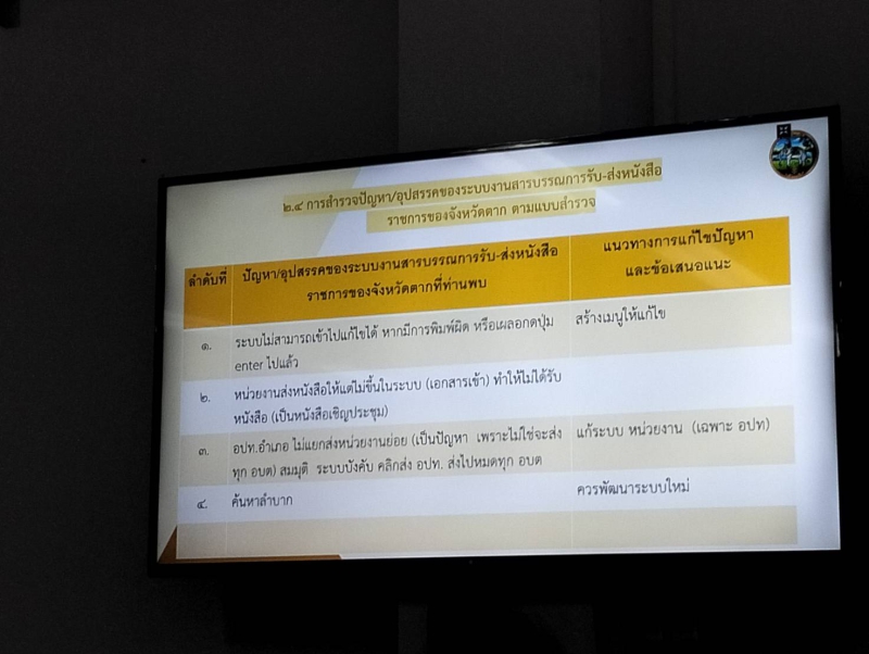 นางประเทือง มหาพิรุณ เกษตรและสหกรณ์จังหวัดตาก มอบหมายให้นางสาวกนกพร ใจบุญ เจ้าหน้าที่บันทึกข้อมูล ฝ่ายบริหารทั่วไป เข้าร่วมประชุมหารือแนวทางการพัฒนางานระบบสารบรรณของจังหวัดตาก ณ ห้องประชุมทีลอซู ชั้น 4 ศาลากลางจังหวัดตาก โดยมี นายศเนติ จิรภาสอังกูร หัวหน้าสำนักงานจังหวัดตาก เป็นประธานในการประชุม เพื่อแจ้งถึง 1) คำสั่งแต่งตั้งคณะกรรมการพัฒนางานระบบสารบรรณของจังหวัดตาก 2) การทำงานของระบบสำนักงานอิเล็กทรอนิกส์ SMART OFFICE จังหวัดตาก 3) การลดใช้กระดาษโดย การใช้ QR Code แทนในส่วนเอกสารแนบหรือเอกสารที่เกี่ยวข้อง 4) ปัญหาที่พบในการใช้ระบบสารบรรณ ทั้งนี้ ประธานได้ขอให้ที่ประชุมเสนอแนวทางในการแก้ปัญหาที่พบในการใช้ระบบดังกล่าว ซึ่งที่ประชุมได้มีการเสนอให้มีการปรับปรุงระบบเดิม หรือใช้ระบบใหม่ (e-office) ที่อยู่ในความรับผิดชอบของโทรคมนาคม เพื่อให้มีการพัฒนาระบบอย่างมีประสิทธิภาพ ทั้งนี้ ข้อมูลการหารือในที่ประชุม ฝ่ายเลขาฯ จะสรุปและนำเสนอผู้บริหารต่อไป