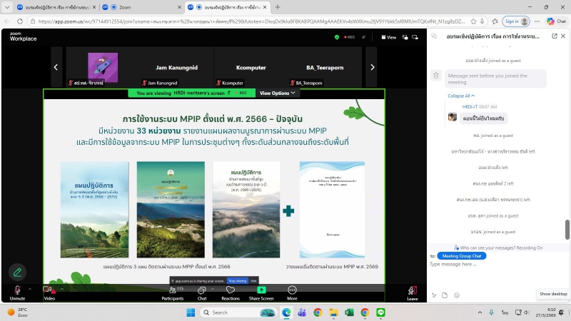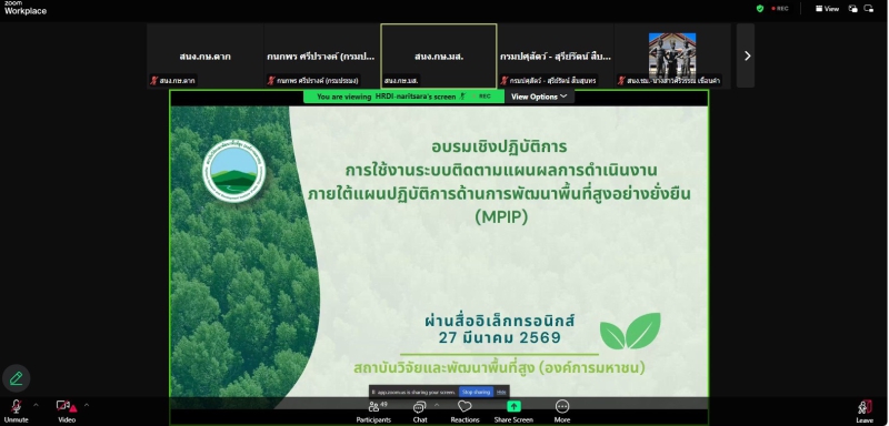 นางประเทือง มหาพิรุณ เกษตรและสหกรณ์จังหวัดตาก มอบหมายให้นางกฤษณา ลัดครบุรี หัวหน้ากลุ่มช่วยเหลือเกษตรกรและโครงการพิเศษ เข้าร่วมอบรมเชิงปฏิบัติการ เรื่อง การใช้งานระบบติดตามผลการดำเนินงานภายใต้แผนปฏิบัติการด้านการพัฒนาพื้นที่สูงอย่างยั่งยืน (MPIP) ผ่านสื่ออิเล็กทรอนิกส์ โดยมี นางสาวนภาพร มณฑานพรัตน์ ผู้อำนวยการสำนักยุทธศาสตร์และแผน สถาบันวิจัยและพัฒนาพื้นที่สูง เป็นประธานการประชุม เพื่อให้หน่วยงานส่วนกลาง กระทรวง กรม ระดับจังหวัด ระดับภูมิภาค ระดับท้องถิ่น หน่วยงานเอกชน/MOU มีความสะดวกรวดเร็ว และสามารถนำข้อมูลจากระบบการติดตามแผนผลการดำเนินงานและการใช้จ่ายงบประมาณของหน่วยงานภายใต้แผนปฏิบัติการด้านการพัฒนาพื้นที่สูงแบบโครงการหลวงนำไปใช้ในการวิเคราะห์ประกอบการวางแผนสนับสนุนกิจกรรมและงบประมาณสำหรับดำเนินงานบนพื้นที่สูงให้มีประสิทธิภาพต่อไป