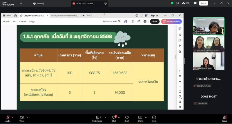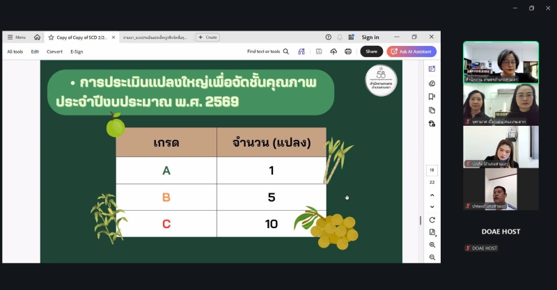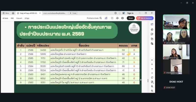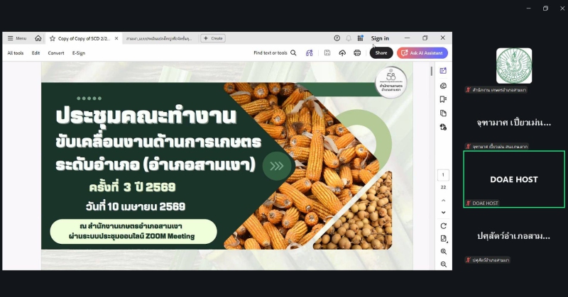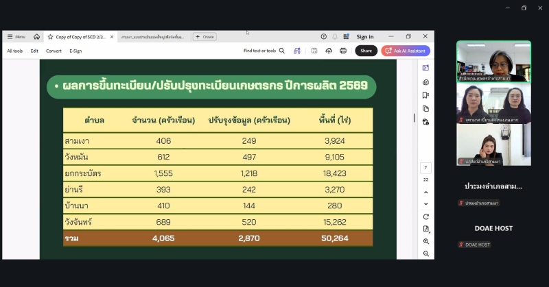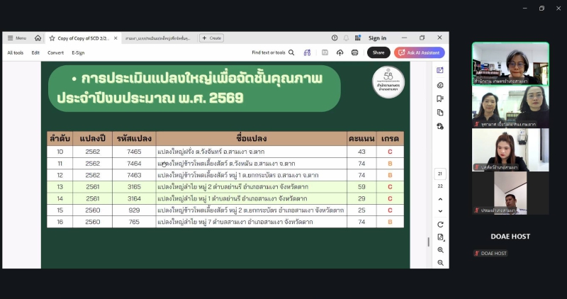 นางประเทือง มหาพิรุณ เกษตรและสหกรณ์จังหวัดตาก มอบหมายให้นางสาวณิชาภา วงษ์สมบูรณ์ หัวหน้ากลุ่มยุทธศาสตร์พัฒนาการเกษตร พร้อมด้วยเจ้าหน้าที่กลุ่มยุทธศาสตร์พัฒนาการเกษตร และเจ้าหน้าที่กลุ่มสารสนเทศการเกษตร เข้าร่วมประชุมคณะทำงานขับเคลื่อนงานด้านการเกษตรระดับอำเภอ อำเภอสามเงา ผ่านระบบออนไลน์ Zoom Meeting โดยมี นางสุกัญญา ขุนอินทร์ เกษตรอำเภอสามเงา เป็นประธานการประชุม เพื่อชี้แจงการดำเนินงานศูนย์บริการเกษตรพิรุณราช (ระบบใหม่) และพิจารณาการประเมินจัดชั้นคุณภาพแปลงใหญ่ของอำเภอสามเงา จำนวน 16 แปลง ซึ่งผลการประเมิน พบว่า มีแปลงใหญ่ระดับ A จำนวน 1 แปลง ระดับ B จำนวน 5 แปลง และระดับ C จำนวน 10 แปลง