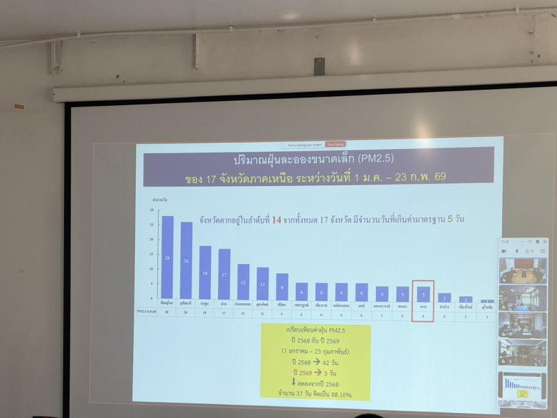 นางประเทือง มหาพิรุณ เกษตรและสหกรณ์จังหวัดตาก มอบหมายให้ นายเสริมศักดิ์ ขันแก้ว นักวิเคราะห์นโยบายและแผนชำนาญการ กลุ่มช่วยเหลือเกษตรกรและโครงการพิเศษ เข้าร่วมการประชุม War Room ติดตามสถานการณ์ไฟป่า หมอกควัน และฝุ่นละอองขนาดเล็ก (PM2.5) ในพื้นที่จังหวัดตาก (ทุกวันพุธของสัปดาห์) ณ ห้องประชุมสำนักงานทรัพยากรธรรมชาติและสิ่งแวดล้อมจังหวัดตาก ศาลากลางหลังเก่า ชั้น 1 อำเภอเมืองตาก จังหวัดตาก โดยมีนายประเดิม เดชายนต์บัญชา รองผู้ว่าราชการจังหวัดตาก เป็นประธานในการประชุมดังกล่าว ทั้งนี้ได้เน้นย้ำประกาศกระทรวงเกษตรและสหกรณ์ เรื่อง มาตรการบริหารจัดการป้องกันและแก้ไขปัญหาฝุ่นละอองขนาดเล็ก ไม่เกิน 2.5 ไมครอน (PM2.5) ภาคการเกษตร (ฉบับที่ 2) พ.ศ. 2568 ให้ที่ประชุมเพื่อแจ้งประชาสัมพันธ์ไปยังเกษตรกรให้รับทราบและถือปฏิบัติตามประกาศดังกล่าวโดยเคร่งครัดต่อไป