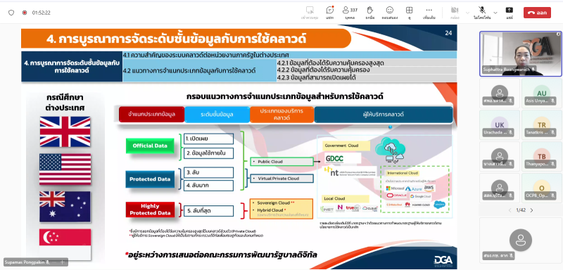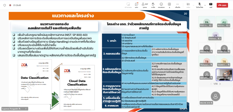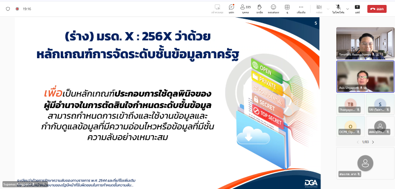นางประเทือง มหาพิรุณ เกษตรและสหกรณ์จังหวัดตาก มอบหมายให้ นายศุภกิตติ์ แก้วผัด นักวิเคราะห์นโยบายและแผนปฏิบัติการ กลุ่มสารสนเทศการเกษตร เข้าร่วมประชุมเพื่อรับฟังความคิดเห็นต่อ (ร่าง) มาตรฐานรัฐบาลดิจิทัล (มรด.) ว่าด้วยหลักเกณฑ์การจัดระดับชั้นข้อมูลภาครัฐ เวอร์ชัน 1.0 ผ่านระบบการประชุมออนไลน์ Microsoft Teams โดยมี ดร.อาศิส อัญญะโพธิ์ รองผู้อำนวยการสำนักงานพัฒนารัฐบาลดิจิทัล เป็นประธานเปิดการประชุม มีวัตถุประสงค์เพื่อให้หน่วยงานภาครัฐสามารถใช้เป็นหลักเกณฑ์ประกอบการใช้ดุลพินิจของผู้มีอำนาจในการตัดสินใจกำหนดระดับชั้นข้อมูล สามารถกำหนดการเข้าถึงการใช้งานข้อมูลและกำกับดูแลข้อมูลที่มีความอ่อนไหวหรือข้อมูลที่มีชั้นความลับอย่างเหมาะสม เพื่อรักษาความเป็นส่วนตัวและความปลอดภัยของข้อมูล ลดความเสี่ยงจากการถูกละเมิดหรือการเปิดเผยข้อมูลโดยไม่ได้รับอนุญาต รวมถึงการสูญหายของข้อมูล โดยการเลือกใช้คลาวด์ที่เหมาะสม เพื่อสามารถให้บริการประชาชนได้อย่างมีประสิทธิภาพ