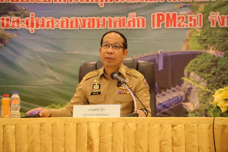 นางประเทือง มหาพิรุณ เกษตรและสหกรณ์จังหวัดตาก เข้าร่วมพิธีเปิดการประชุมเชิงปฏิบัติการเพื่อทำความเข้าใจ ซักซ้อมเครือข่ายภาคประชาชน และรับมอบนโยบายการแก้ไขปัญหาหมอกควันและไฟป่าฯ จังหวัดตาก โดยมีนายชูศักดิ์ รู้ยิ่ง ผู้ว่าราชการจังหวัดตาก เป็นประธาน ณ ห้องประชุมเพชรน้ำหนึ่ง ชั้น 6 อาคารศูนย์ส่งเสริมอาชีพชุมชนเทศบาลนครแม่สอด อำเภอแม่สอด จังหวัดตาก โดยมีกลุ่มเป้าหมายเป็นผู้นำชุมชนในพื้นที่ 5 อำเภอฝั่งตะวันตก เข้าร่วมรับฟัง และมีการมอบเครื่องเป่าลม อำเภอละ 10 เครื่อง เพื่อใช้ในปฏิบัติการดับไฟป่าของพื้นที่ให้เกิดประสิทธิภาพและสามารถระงับเหตุได้ทันที