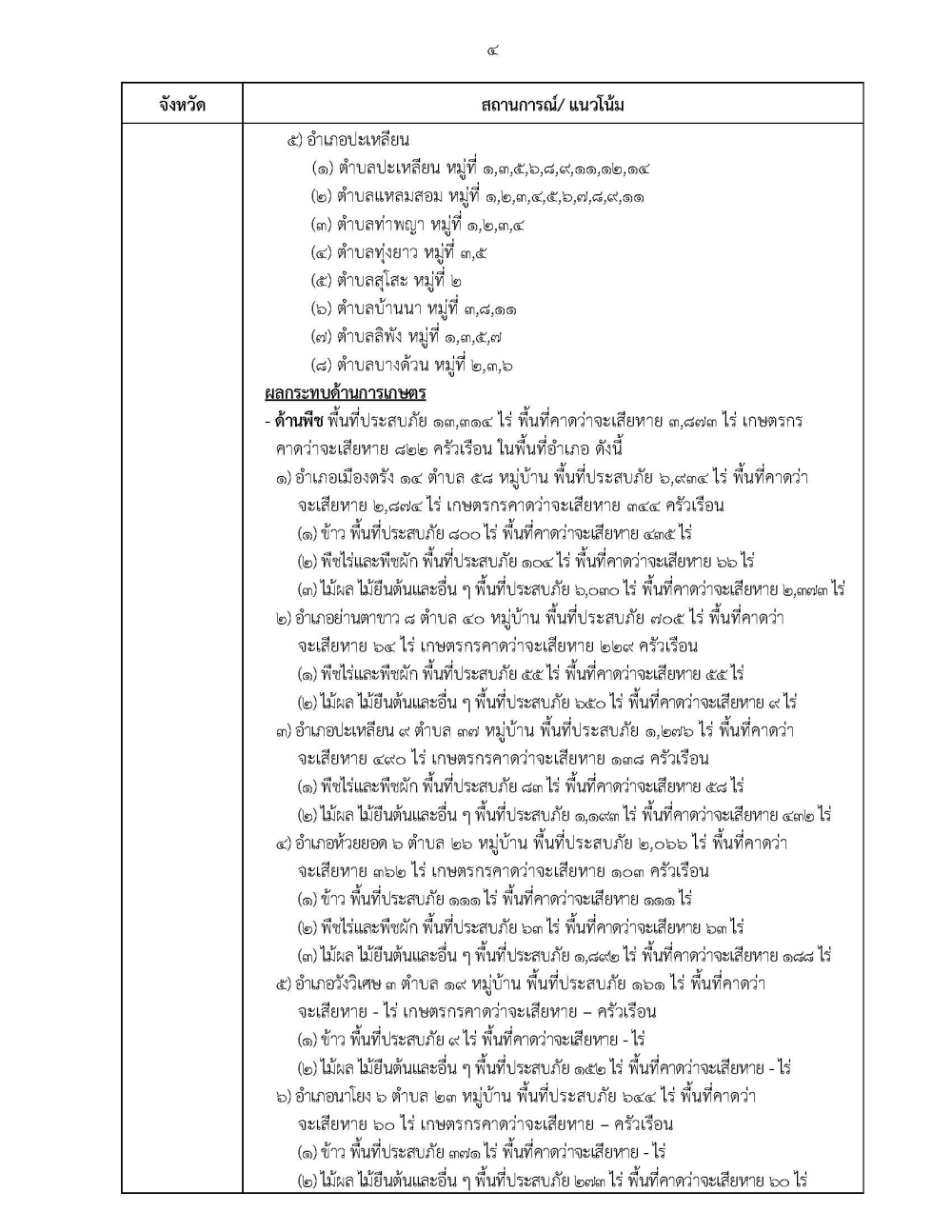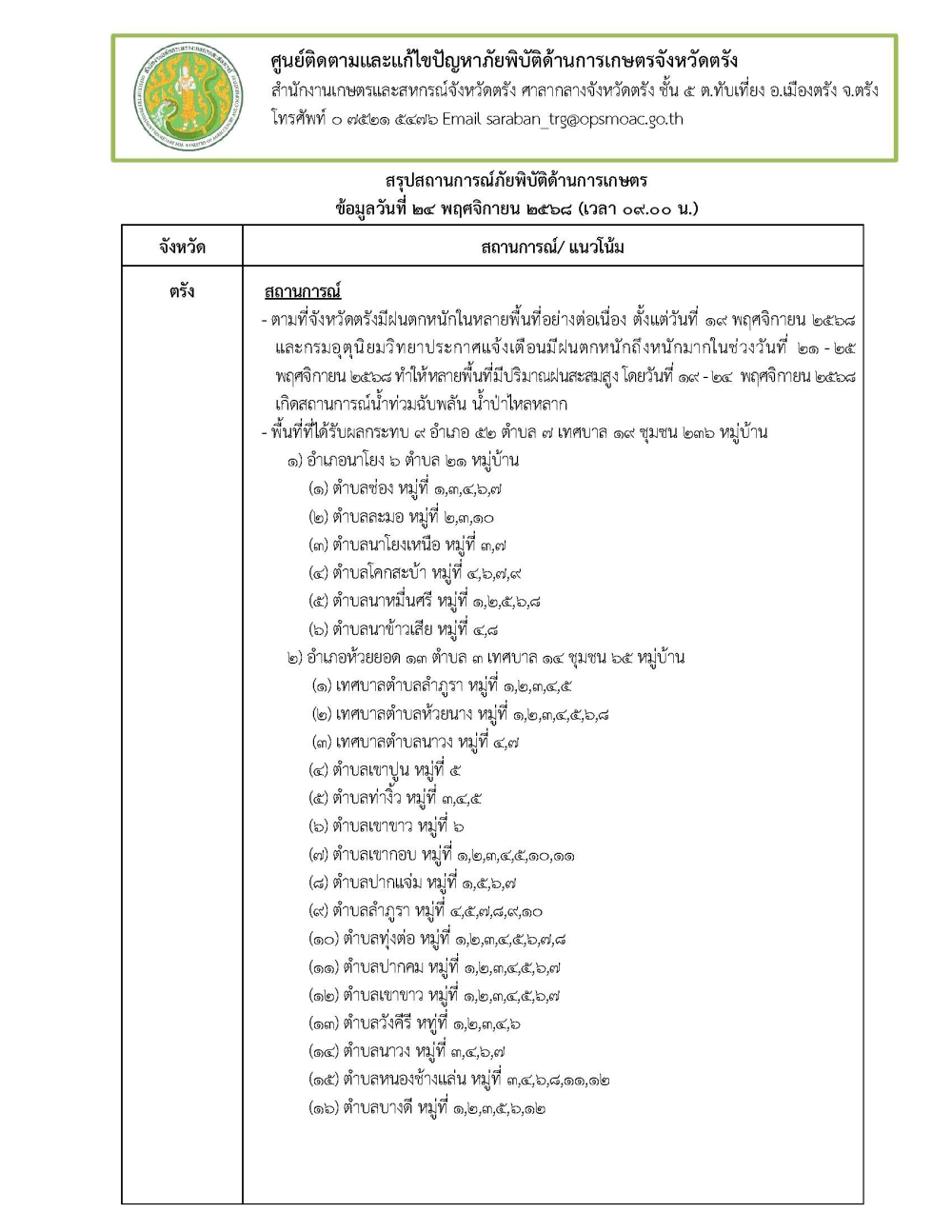 สรุปสถานการณ์ภัยพิบัติด้านการเกษตร (อุทกภัย) ข้อมูล ณ วันที่ 24 พฤศจิกายน 2568 (เวลา 09.00 น.)