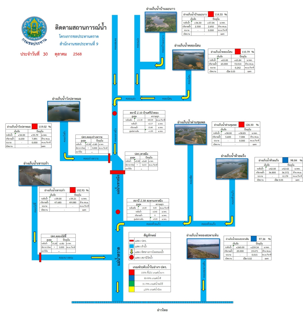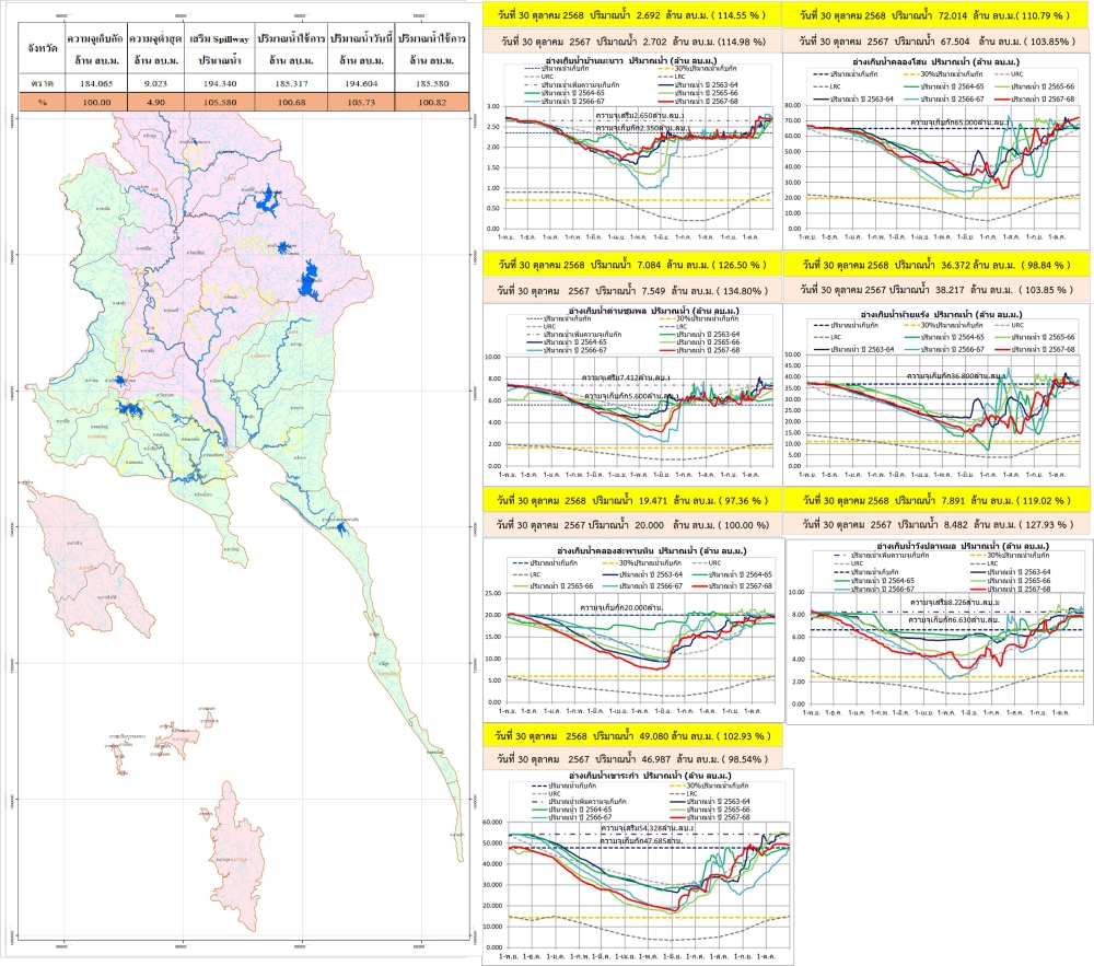 ข้อมูลสถานการณ์ น้ำ แหล่งน้ำ ปริมาณน้ำ ประจำวันที่ 30 ตุลาคม 68