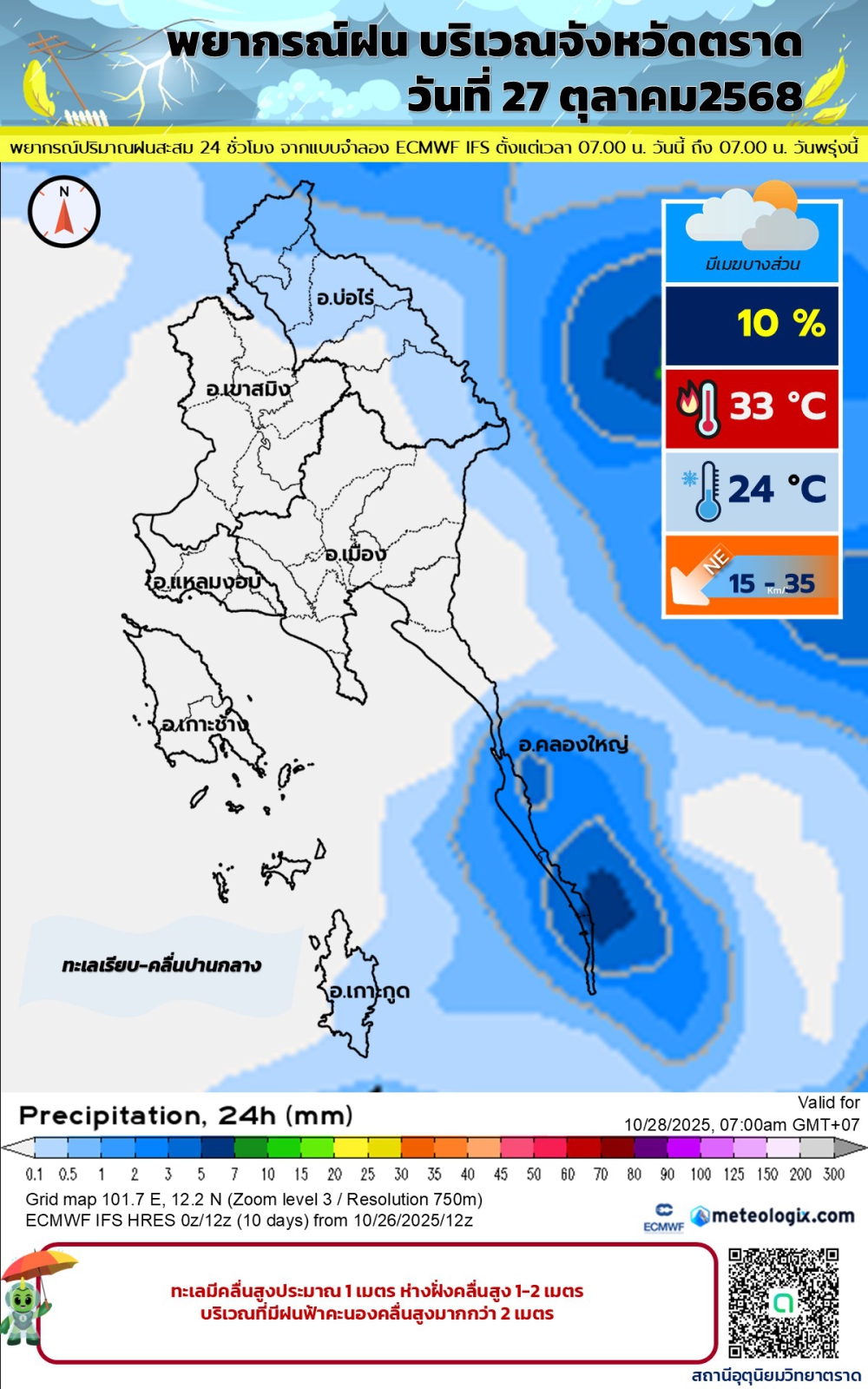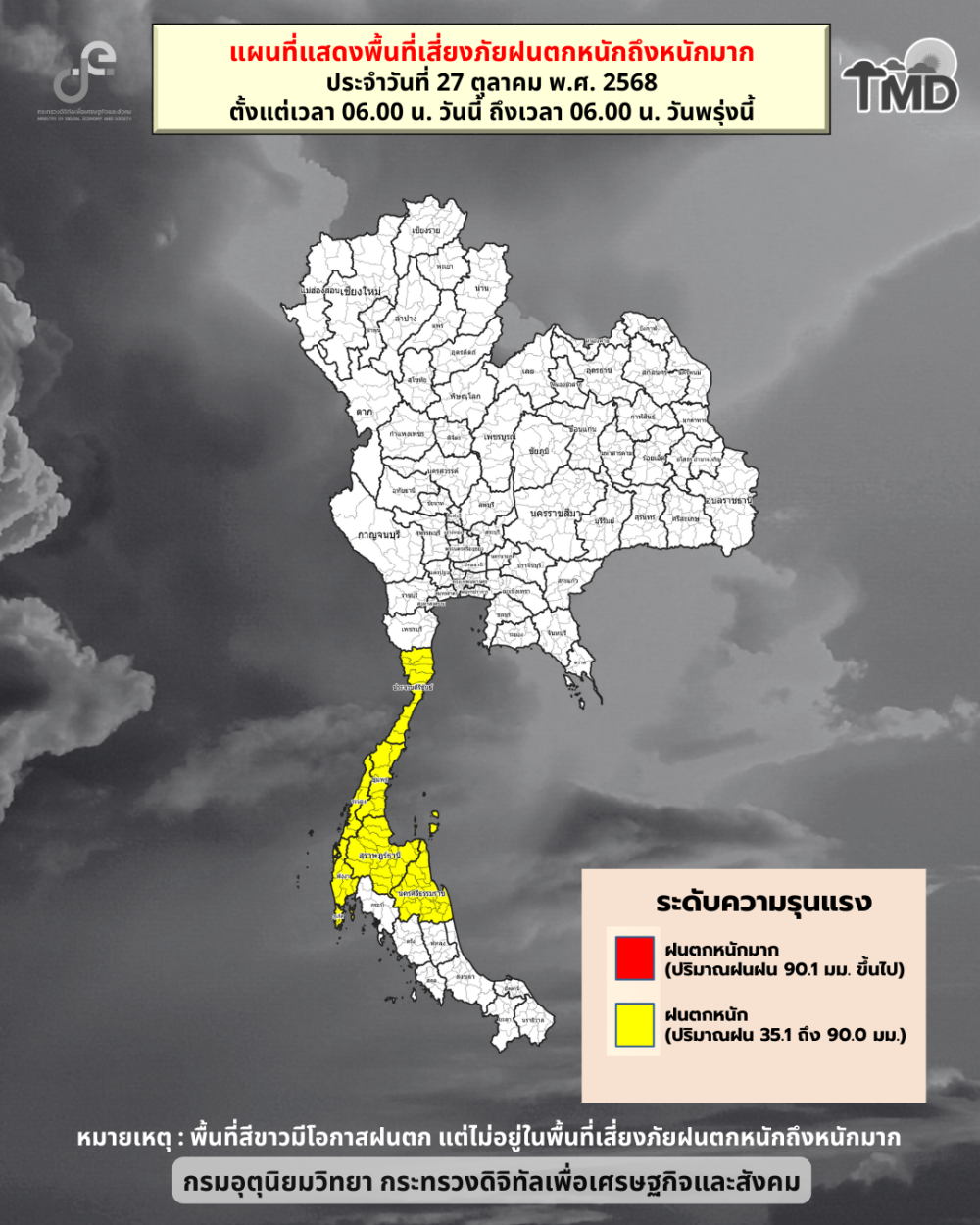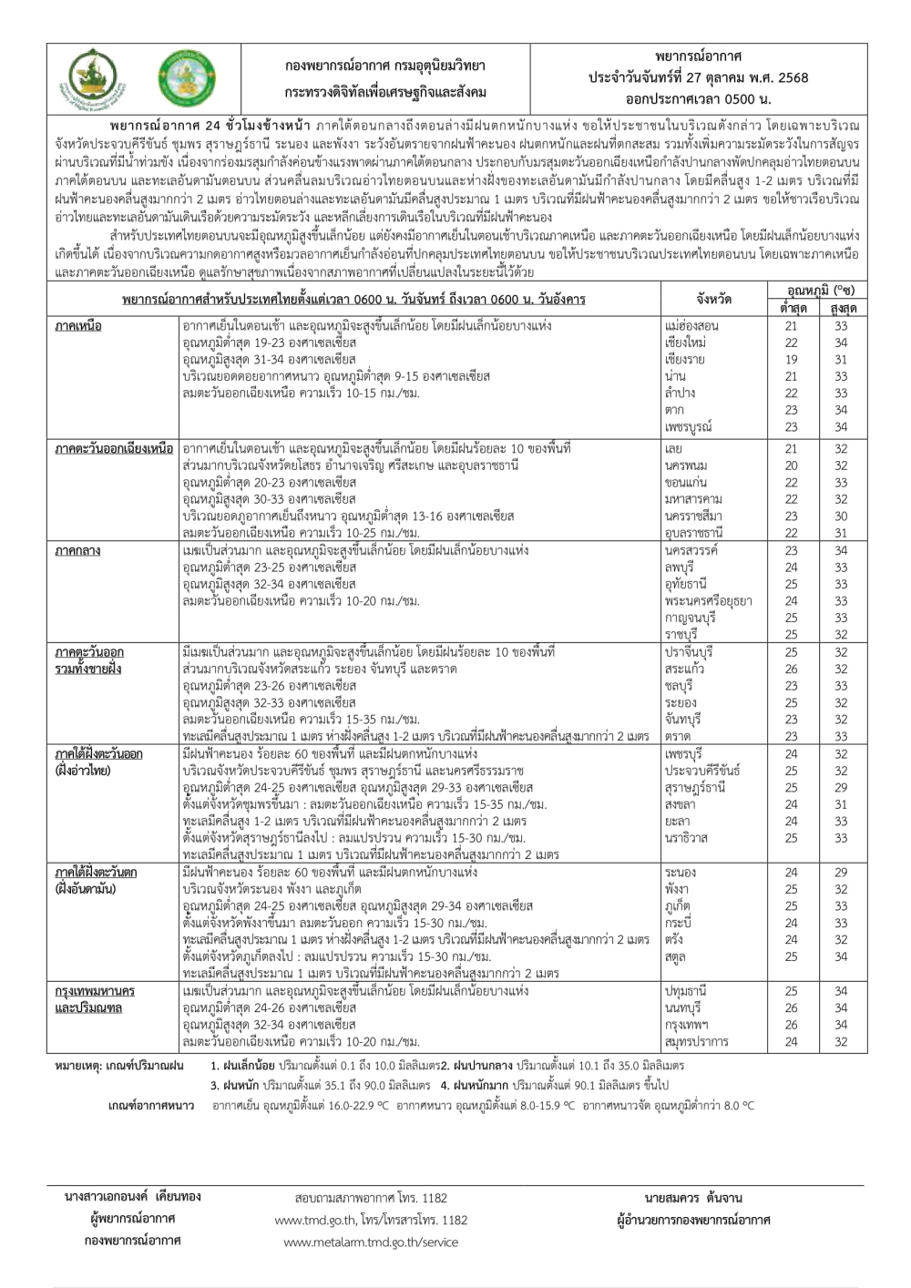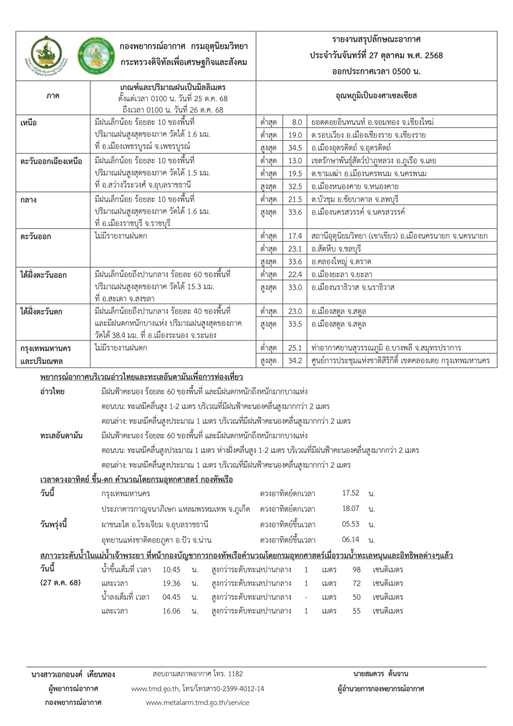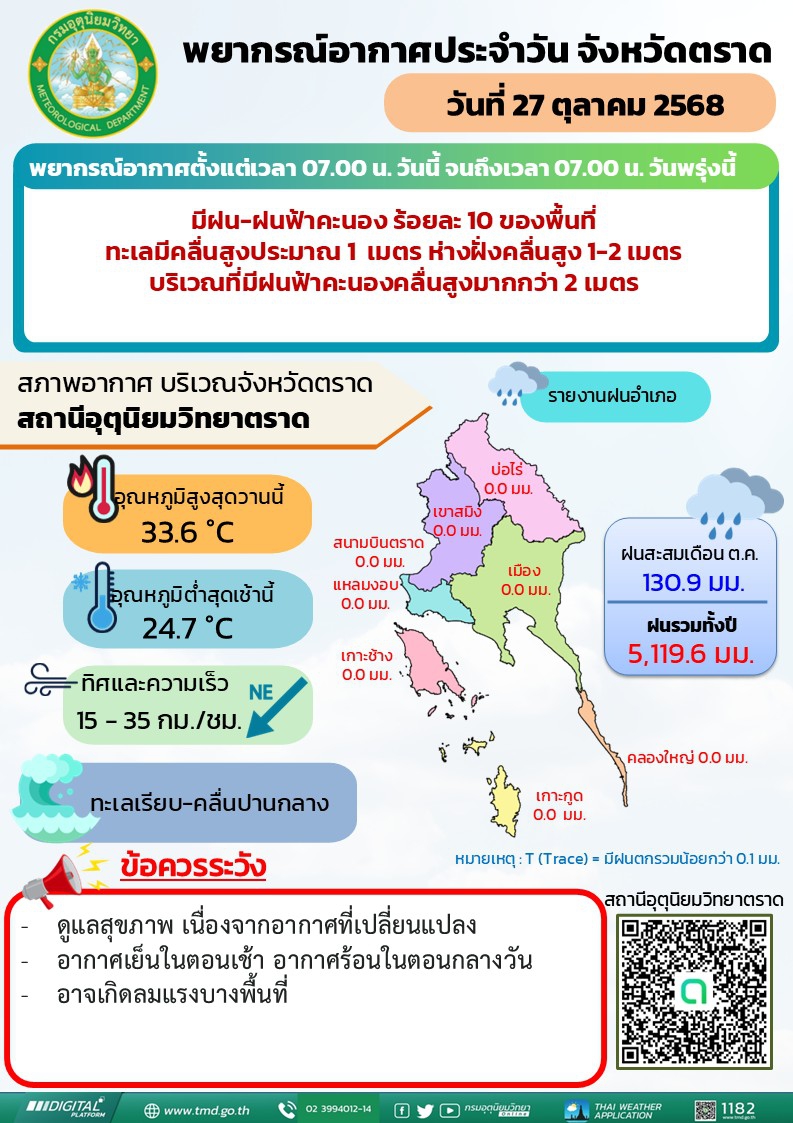 พยากรณ์อากาศประจำวันที่ 27 ตุลาคม 2568