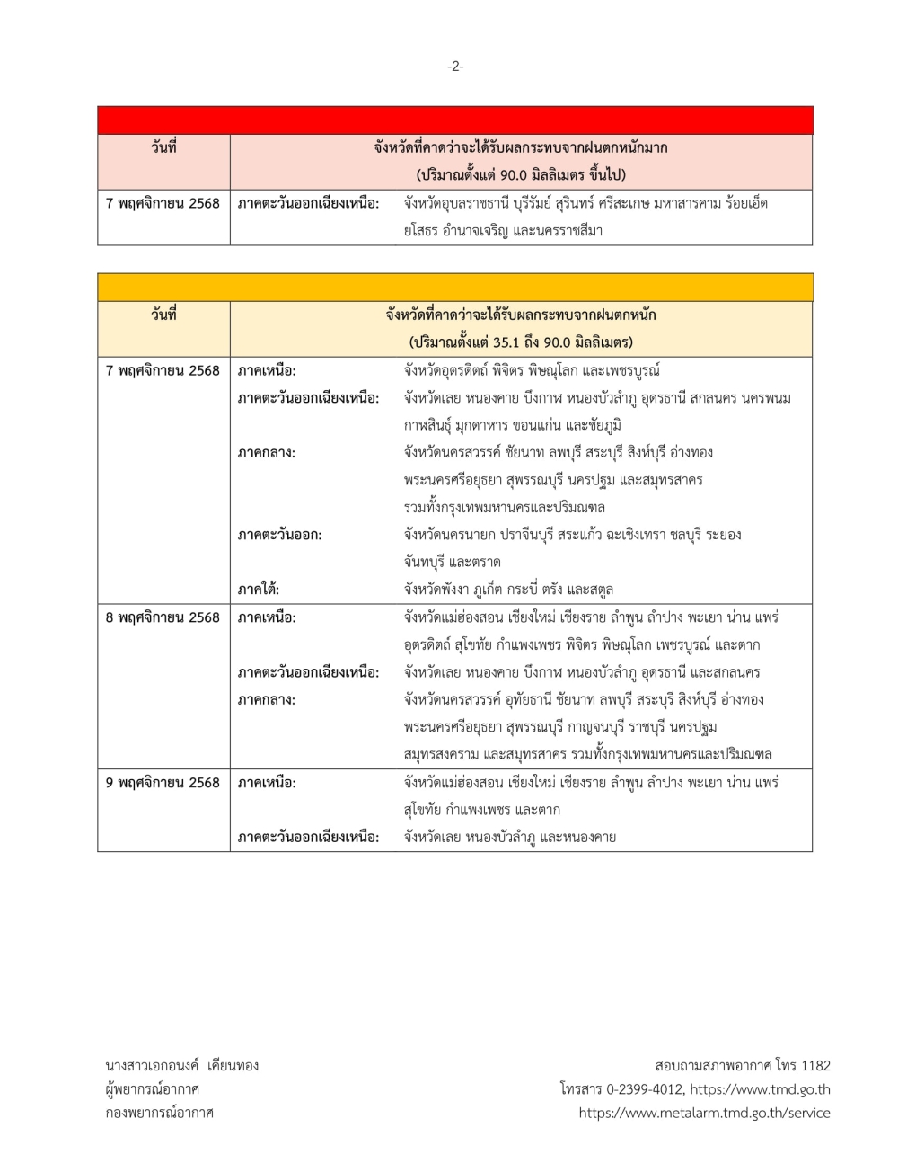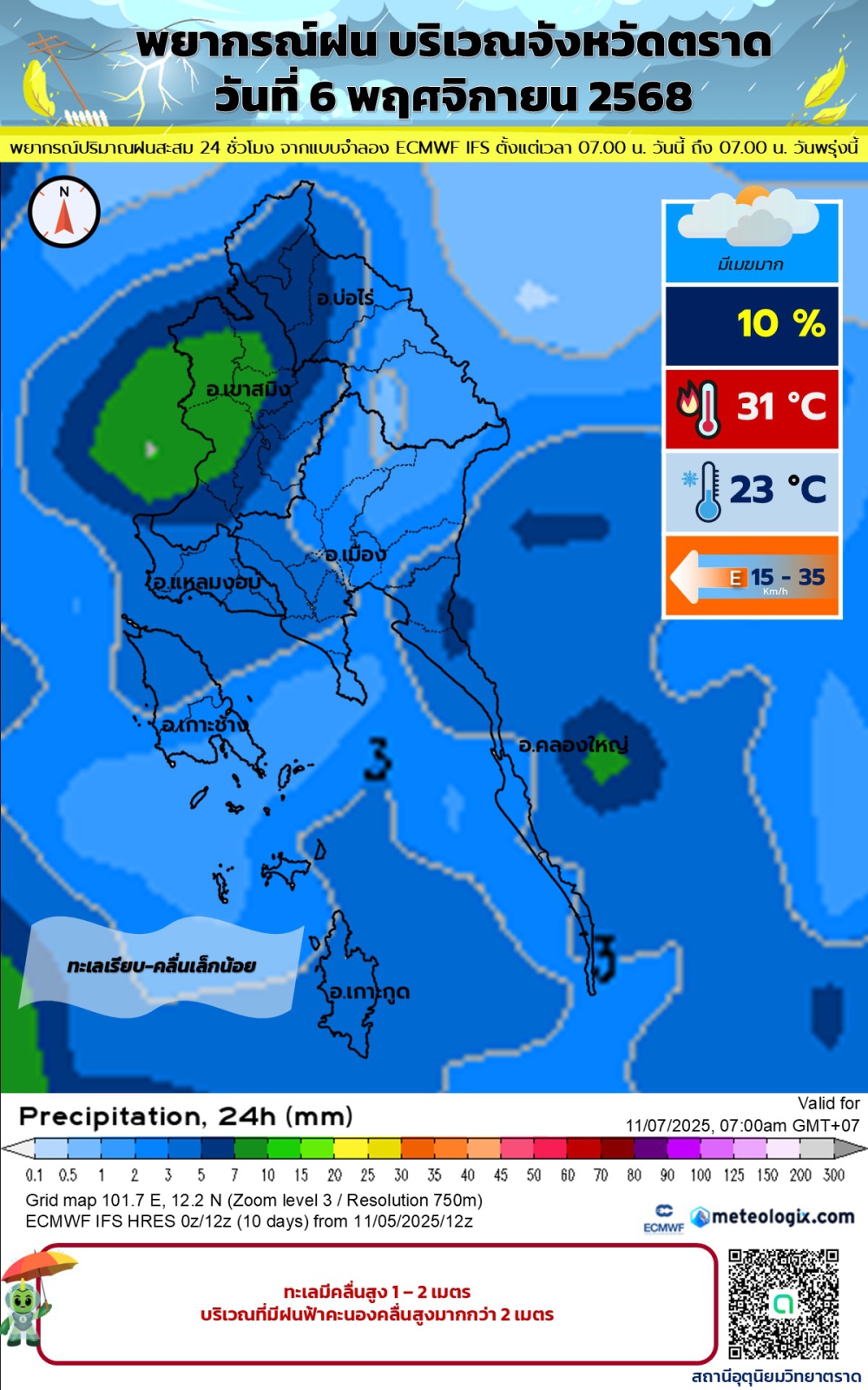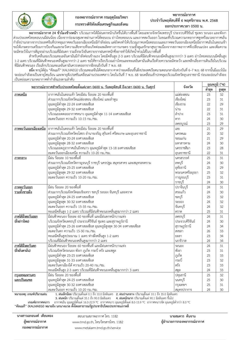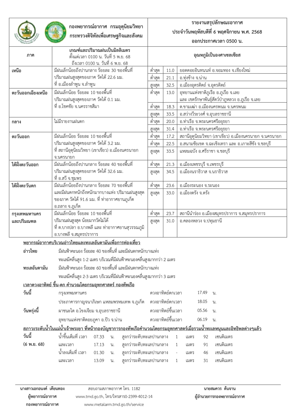 พยากรณ์อากาศประจำวันที่ 6 พฤศจิกายน 2568