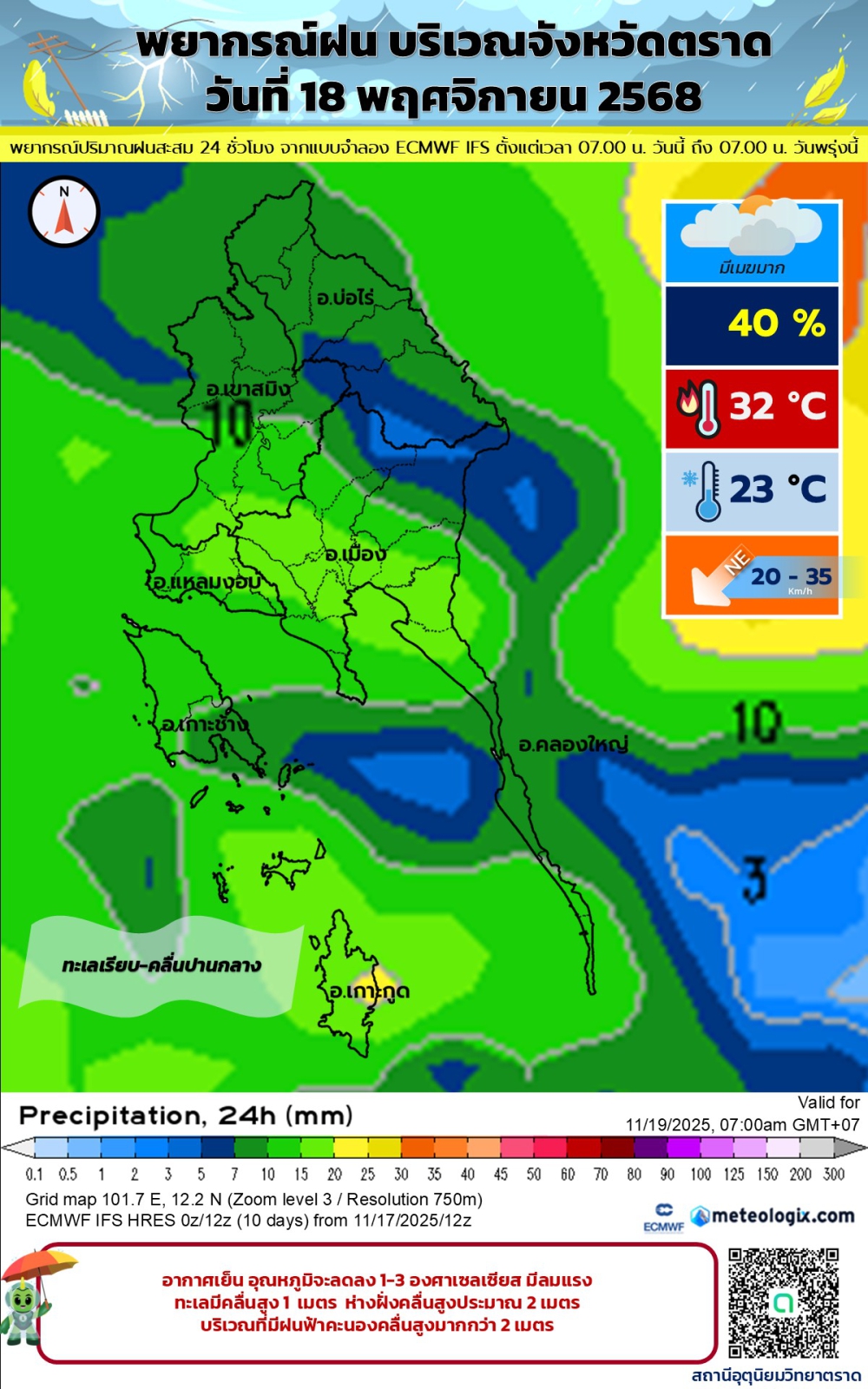 พยากรณ์อากาศประจำวันที่ 18 พฤศจิกายน 2568