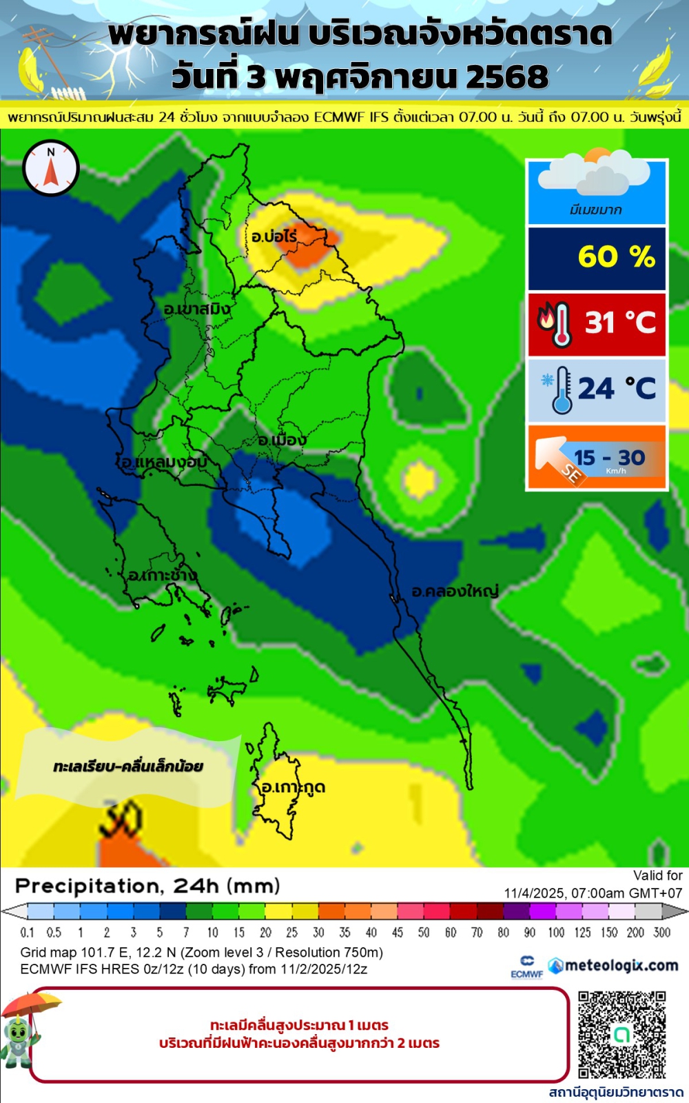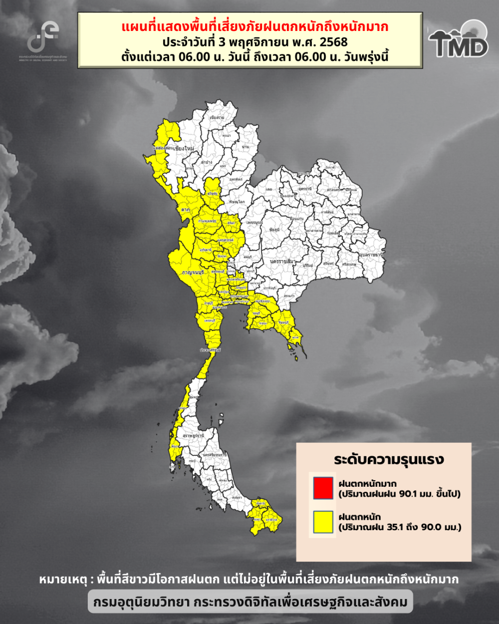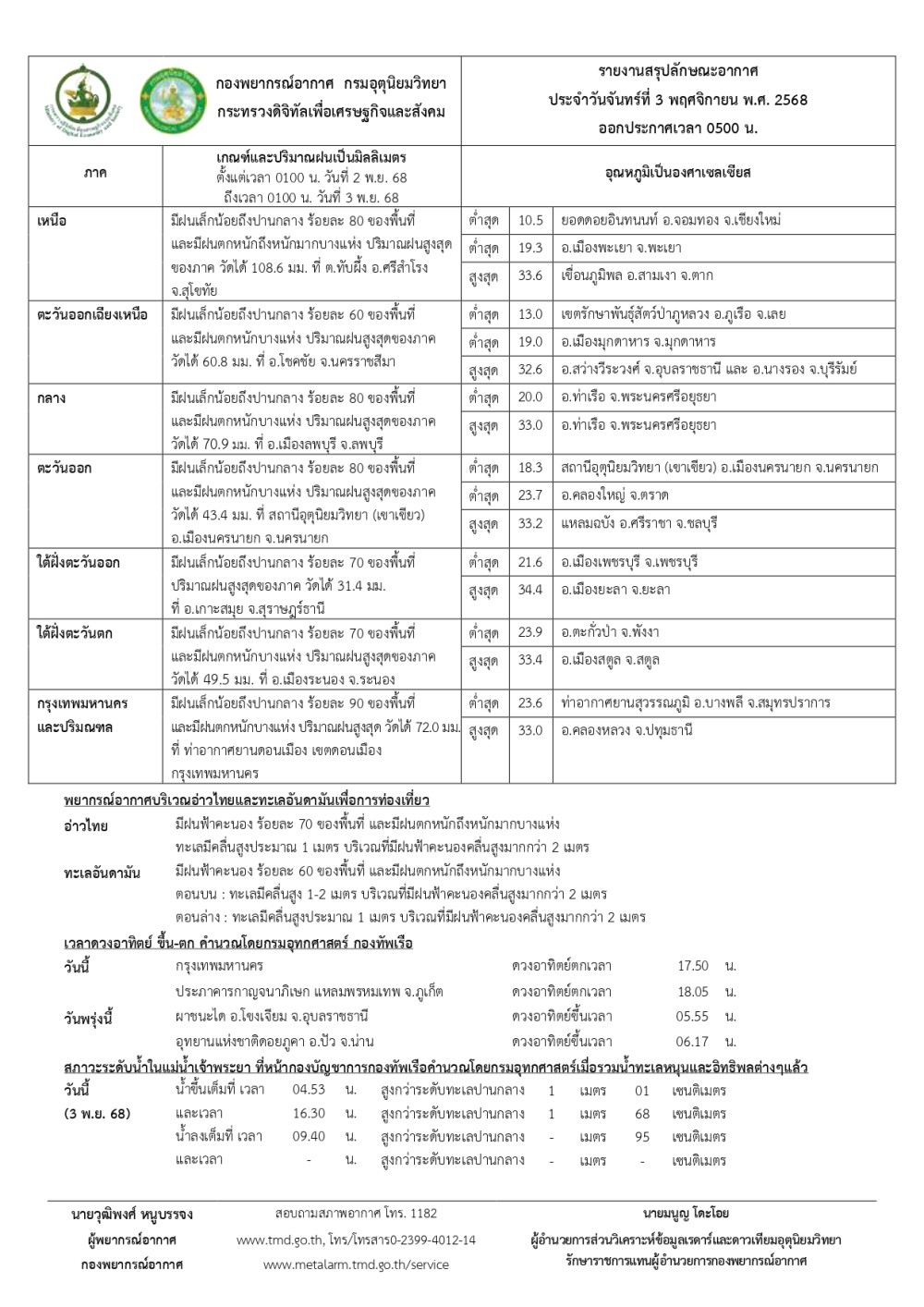 พยากรณ์อากาศประจำวันที่ 3 พฤศจิกายน 2568